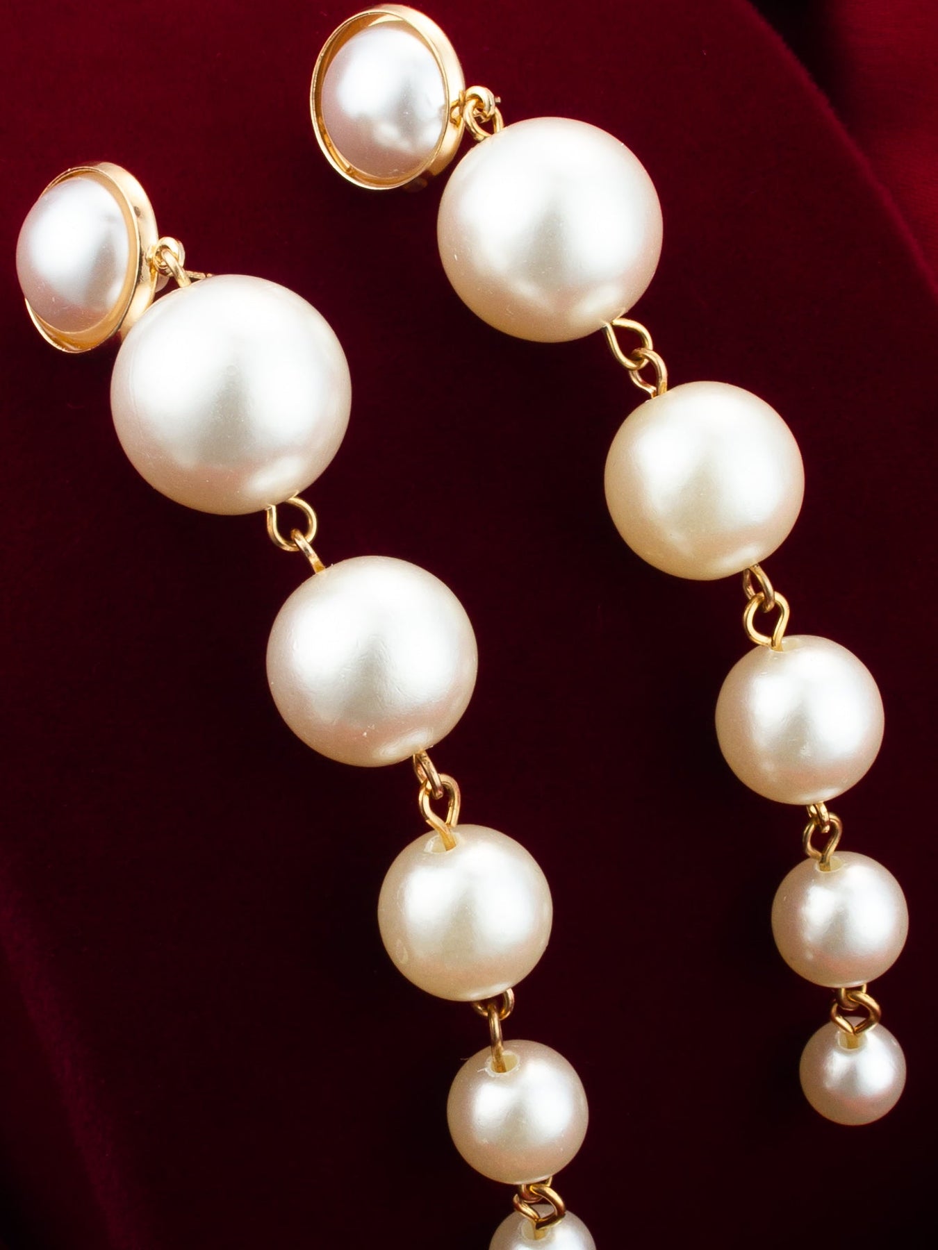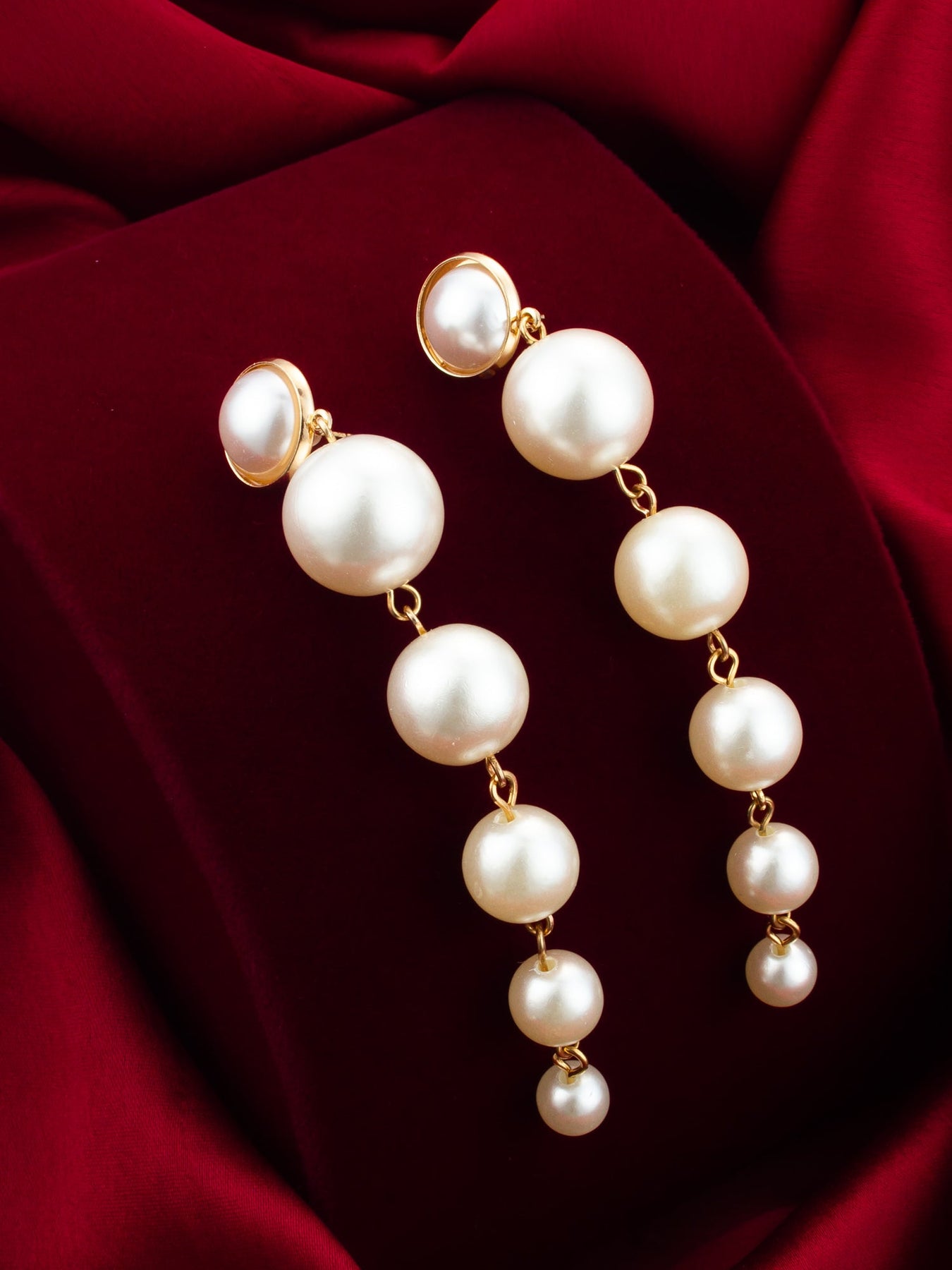 Elevate Your Elegance With Our Stunning Pearl Drop Earrings, Expertly Crafted From Luxurious Gold And Lustrous White Pearls. These Timeless Accessories Effortlessly Blend Sophistication And Style, Making Them The Perfect Addition To Any Outfit, Whether For A Special Occasion Or Everyday Wear.