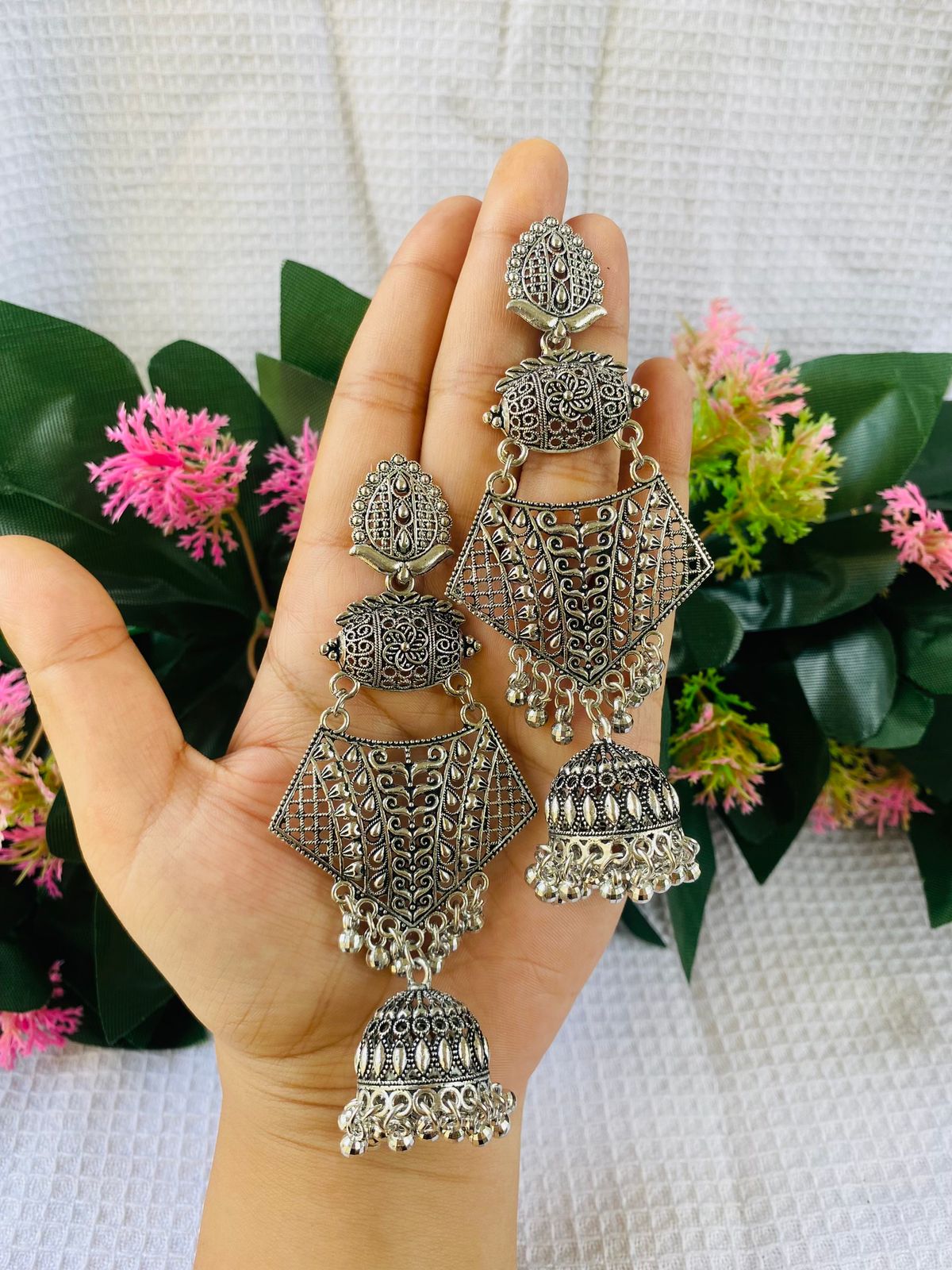 Enhance Your Look With Our Silver Oxidized Earrings Combo, A Perfect Blend Of Traditional Charm And Modern Elegance. This Carefully Curated Set Features Intricately Designed Earrings That Showcase Exquisite Craftsmanship, Making Them Ideal For Any Occasion—Be It Festive Celebrations, Casual Outings, Or Special Events.