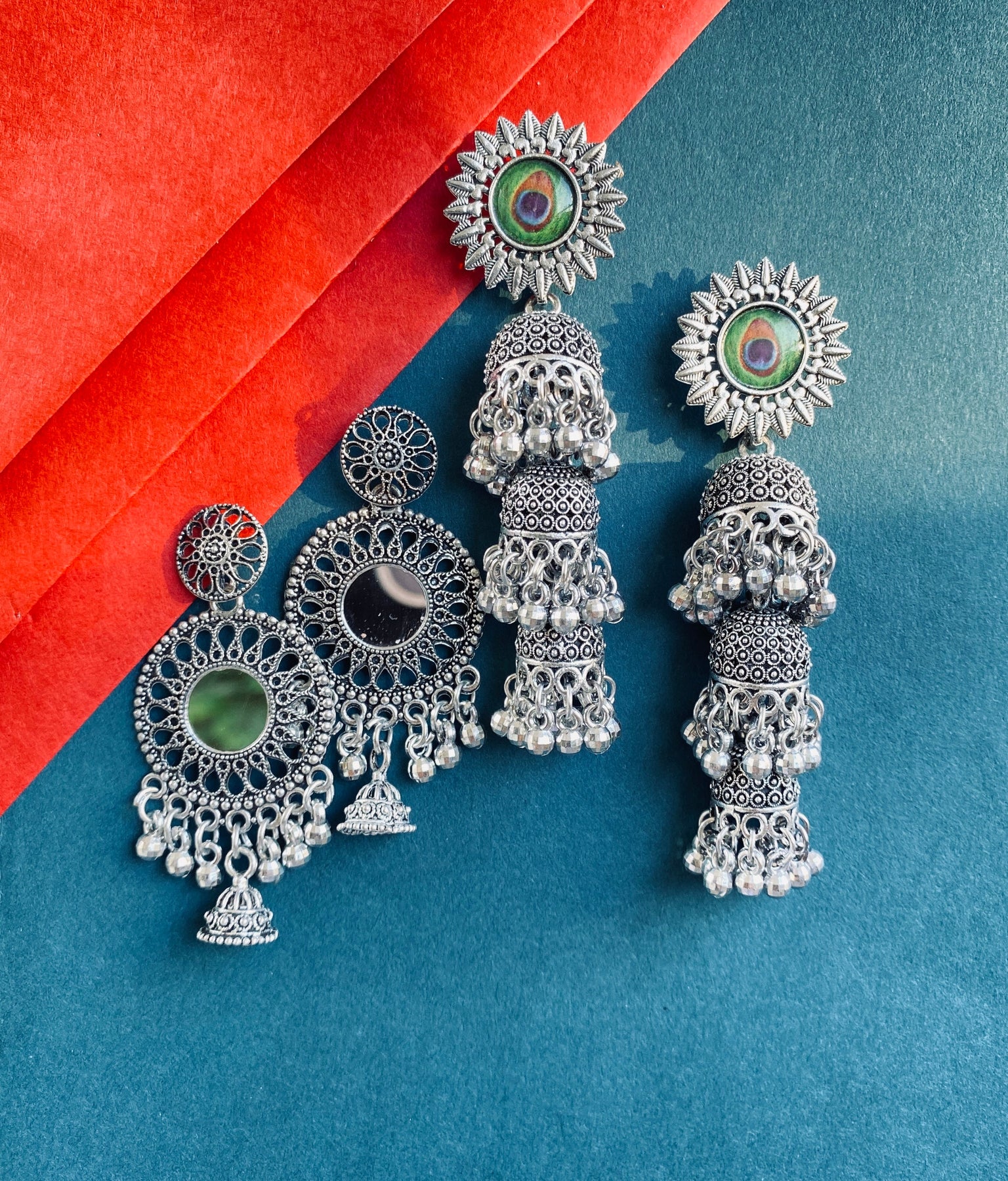 Enhance Your Look With Our Silver Oxidized Earrings Combo, A Perfect Blend Of Traditional Charm And Modern Elegance. This Carefully Curated Set Features Intricately Designed Earrings That Showcase Exquisite Craftsmanship, Making Them Ideal For Any Occasion—Be It Festive Celebrations, Casual Outings, Or Special Events.