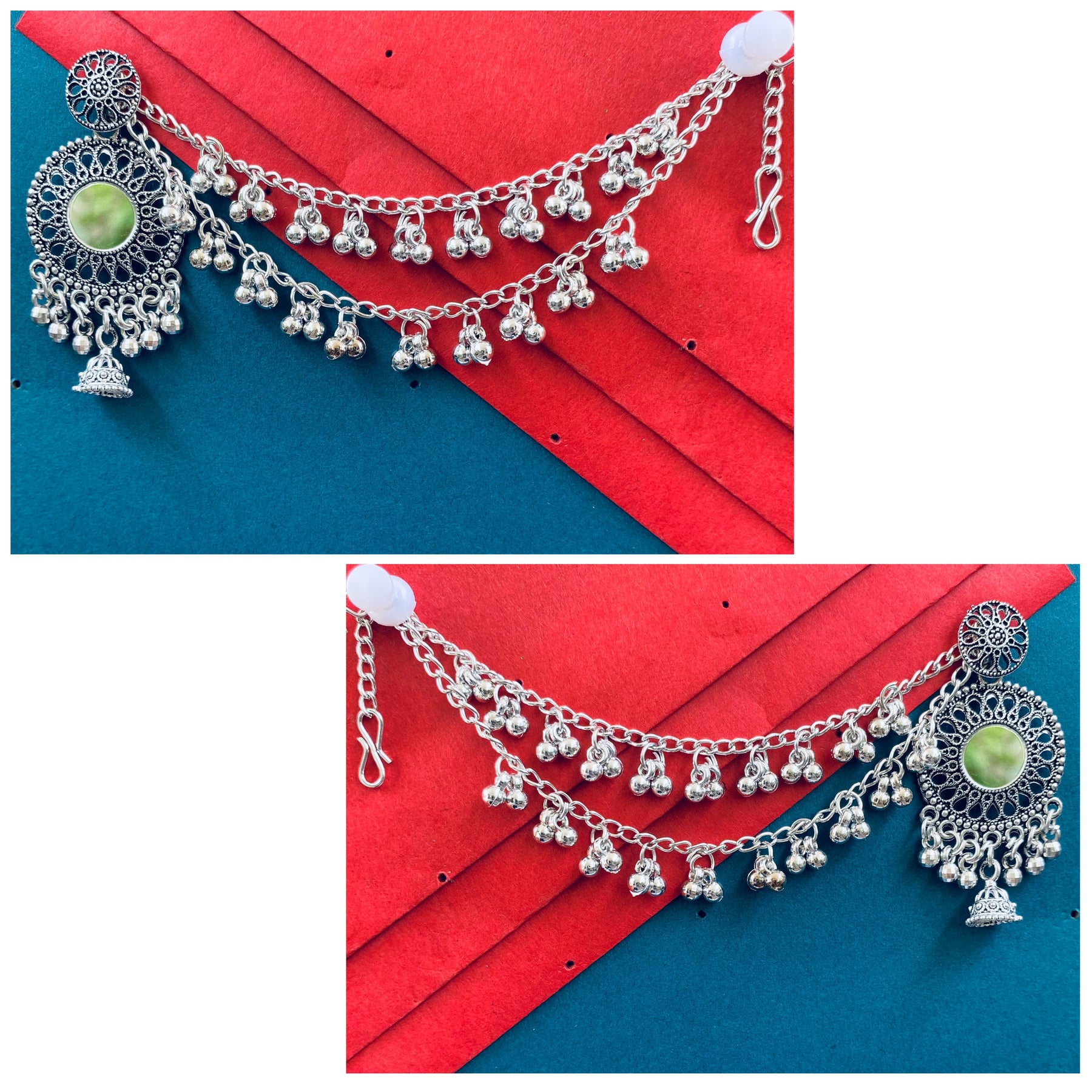 Enhance Your Look With Our Oxidised Silver Earrings, A Perfect Blend Of Traditional Charm And Modern Elegance. This Carefully Curated Set Features Intricately Designed Earrings That Showcase Exquisite Craftsmanship, Making Them Ideal For Any Occasion, Specially In Navratri.