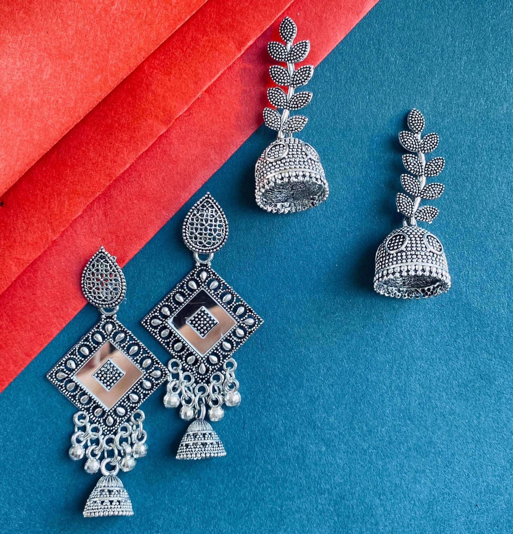 Enhance Your Look With Our Silver Oxidized Earrings Combo, A Perfect Blend Of Traditional Charm And Modern Elegance. This Carefully Curated Set Features Intricately Designed Earrings That Showcase Exquisite Craftsmanship, Making Them Ideal For Any Occasion—Be It Festive Celebrations, Casual Outings, Or Special Events.