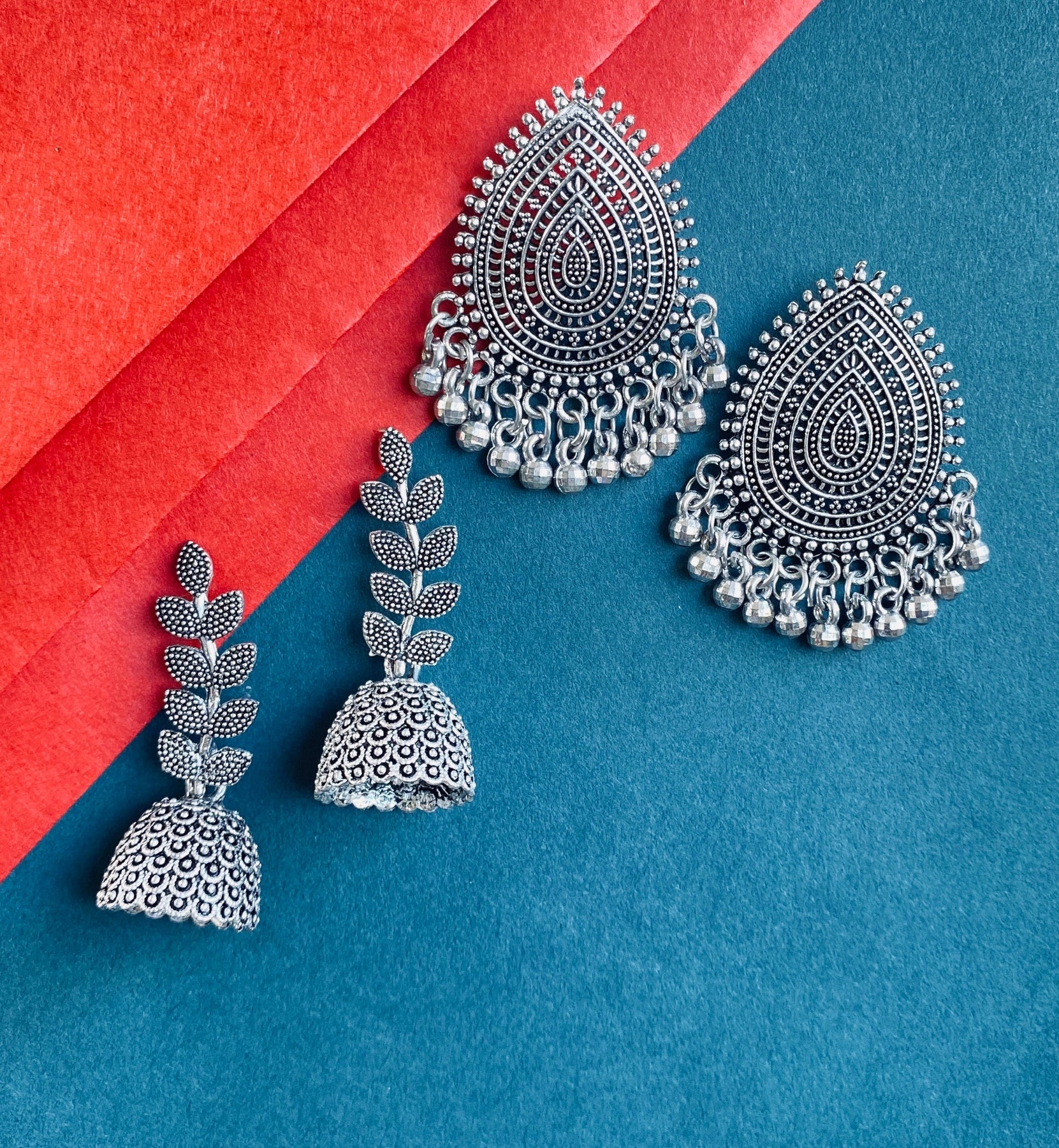 Enhance Your Look With Our Silver Oxidized Earrings Combo, A Perfect Blend Of Traditional Charm And Modern Elegance. This Carefully Curated Set Features Intricately Designed Earrings That Showcase Exquisite Craftsmanship, Making Them Ideal For Any Occasion—Be It Festive Celebrations, Casual Outings, Or Special Events.