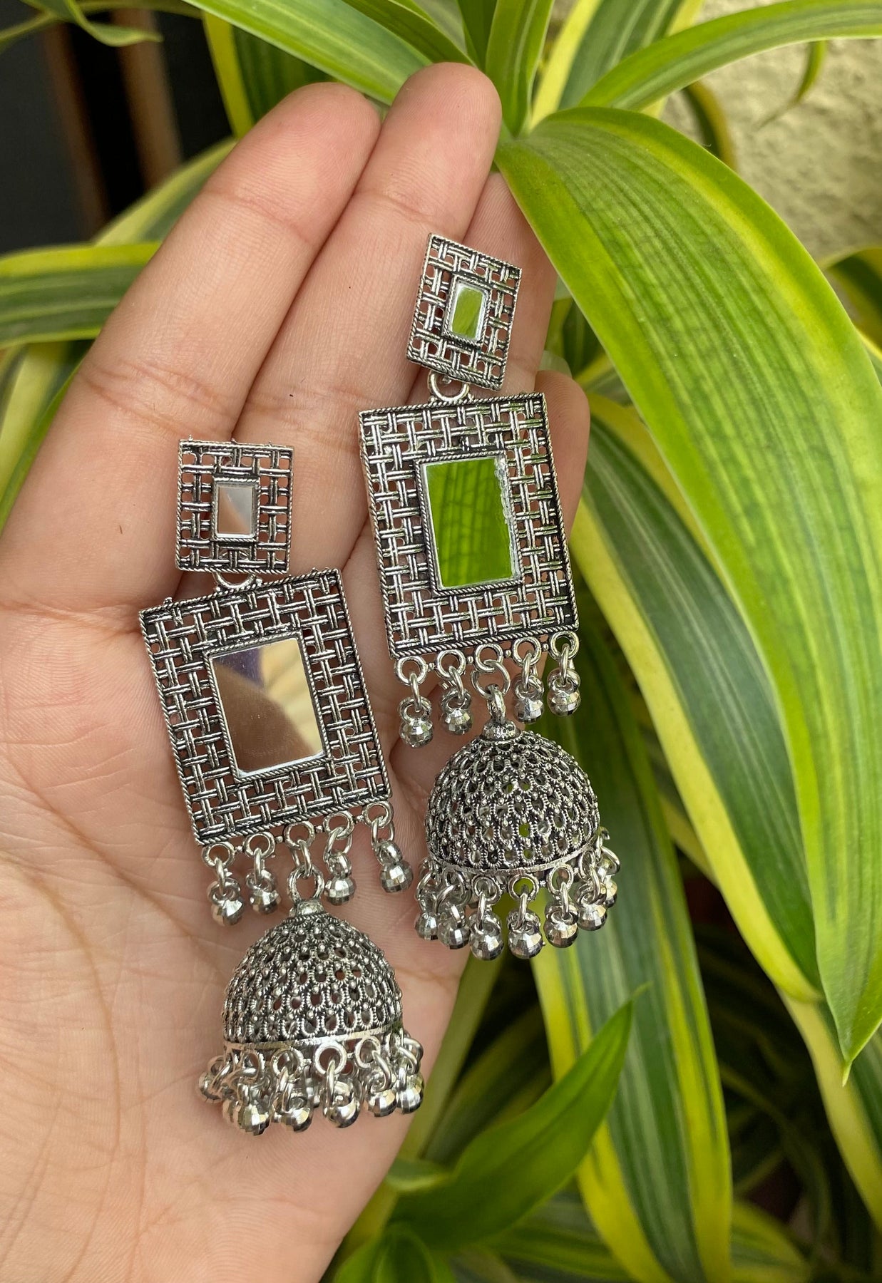 Enhance Your Look With Our Oxidised Silver Earrings, A Perfect Blend Of Traditional Charm And Modern Elegance. This Carefully Curated Set Features Intricately Designed Earrings That Showcase Exquisite Craftsmanship, Making Them Ideal For Any Occasion, Specially In Navratri.