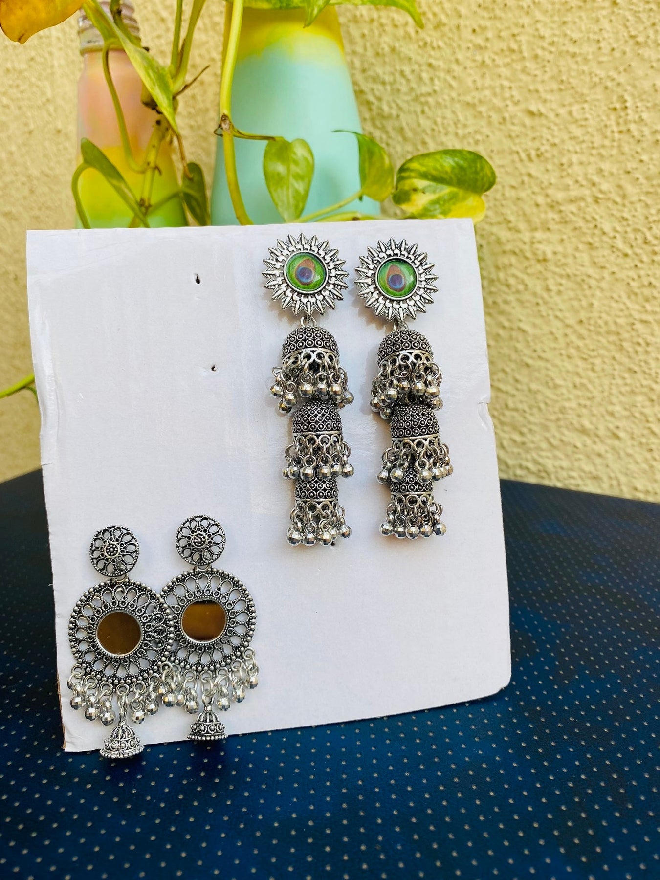 Enhance Your Look With Our Silver Oxidized Earrings Combo, A Perfect Blend Of Traditional Charm And Modern Elegance. This Carefully Curated Set Features Intricately Designed Earrings That Showcase Exquisite Craftsmanship, Making Them Ideal For Any Occasion—Be It Festive Celebrations, Casual Outings, Or Special Events.