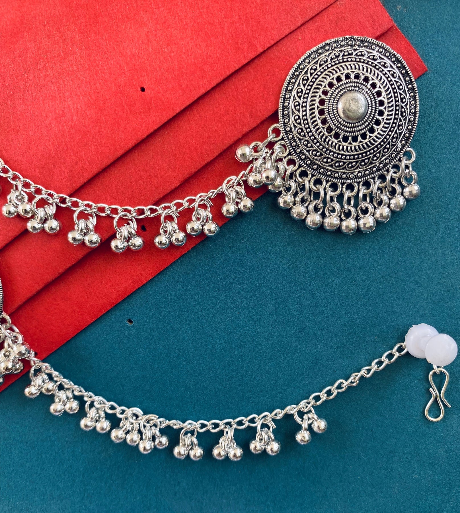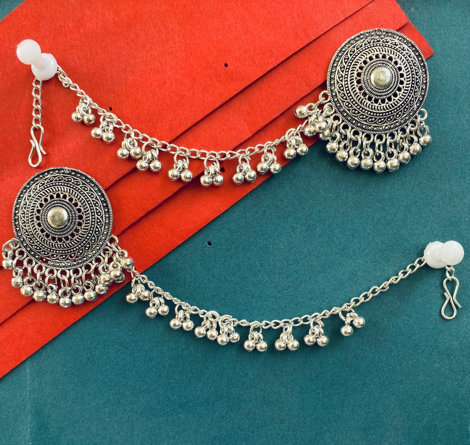 Enhance Your Look With Our Oxidised Silver Earrings, A Perfect Blend Of Traditional Charm And Modern Elegance. This Carefully Curated Set Features Intricately Designed Earrings That Showcase Exquisite Craftsmanship, Making Them Ideal For Any Occasion, Specially In Navratri.