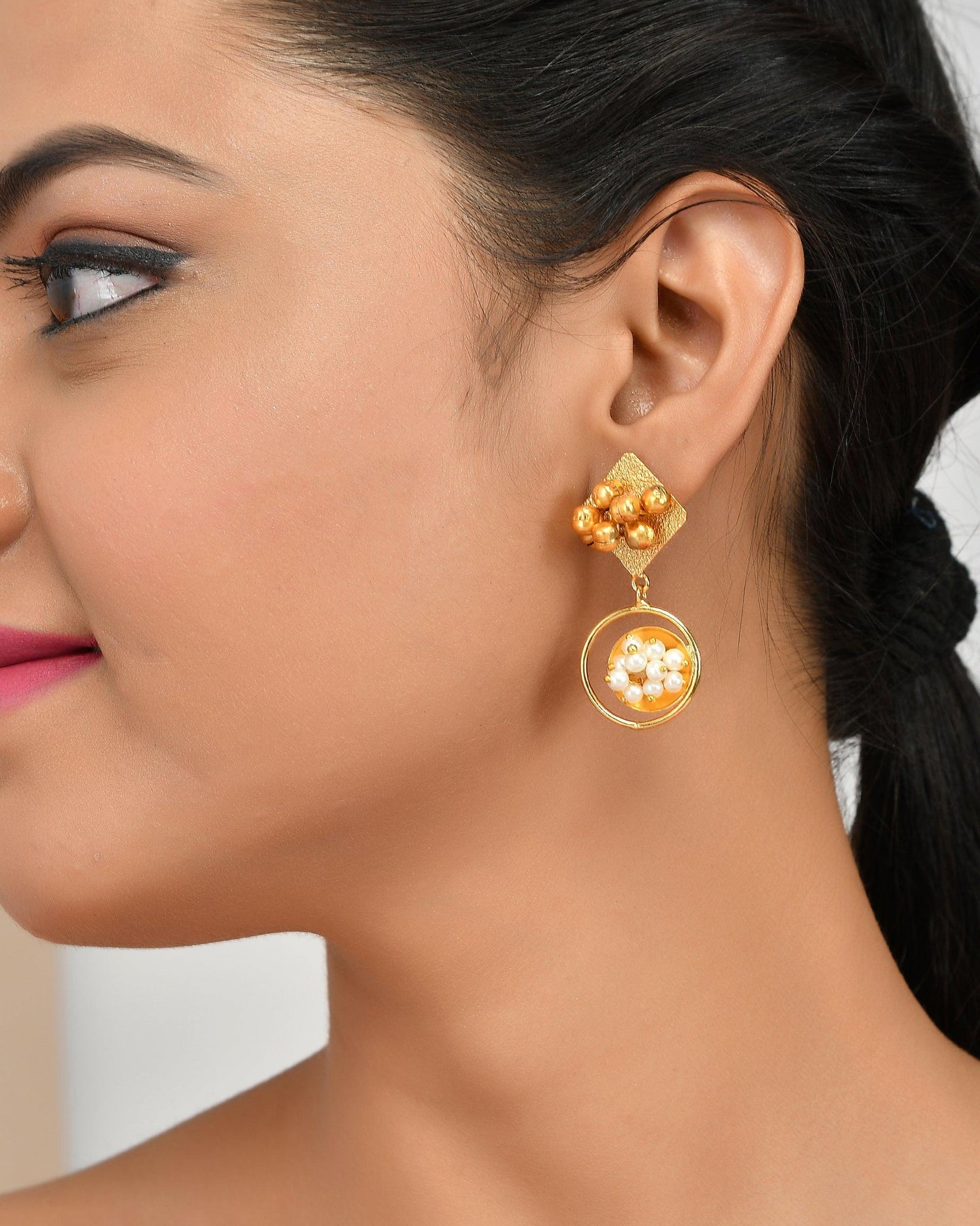 FANCY SQUARE & ROUND GHUNGROO EARRING