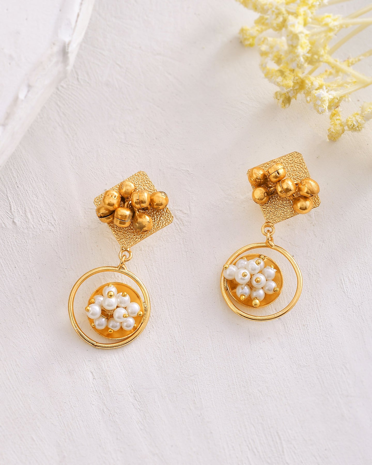 Fancy Square & Round Ghungroo Earring Color :Gold Material :Brass Closure :Hoop Care Instructions :Keep Away From Moisture Weight :0.5G
