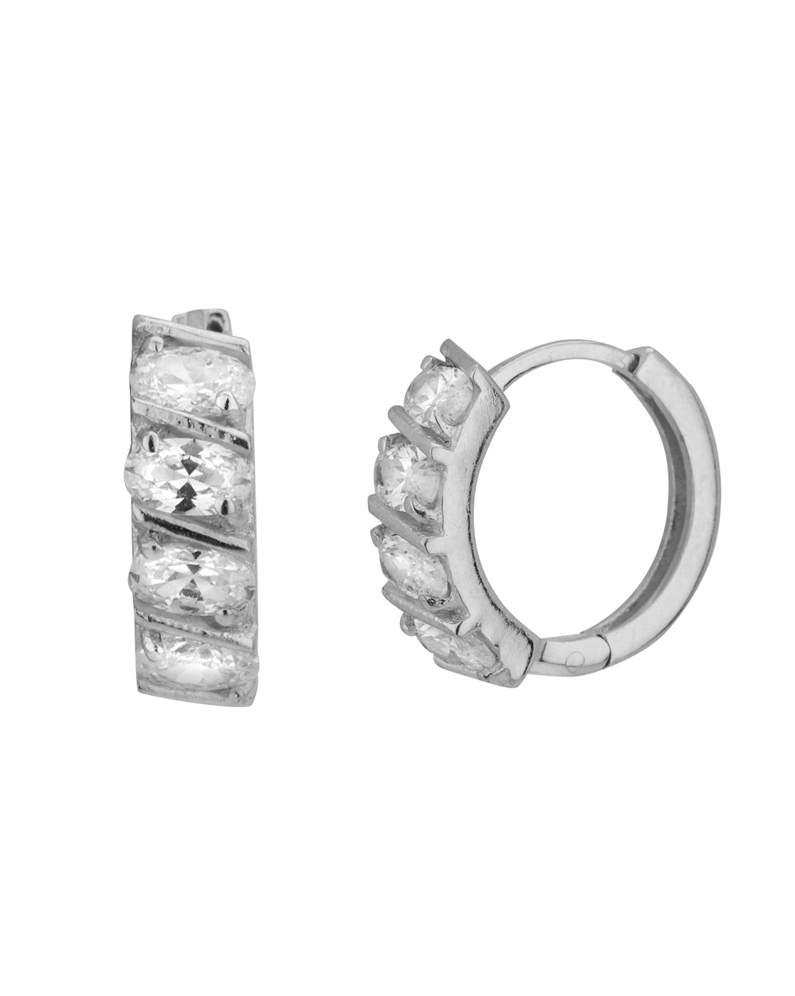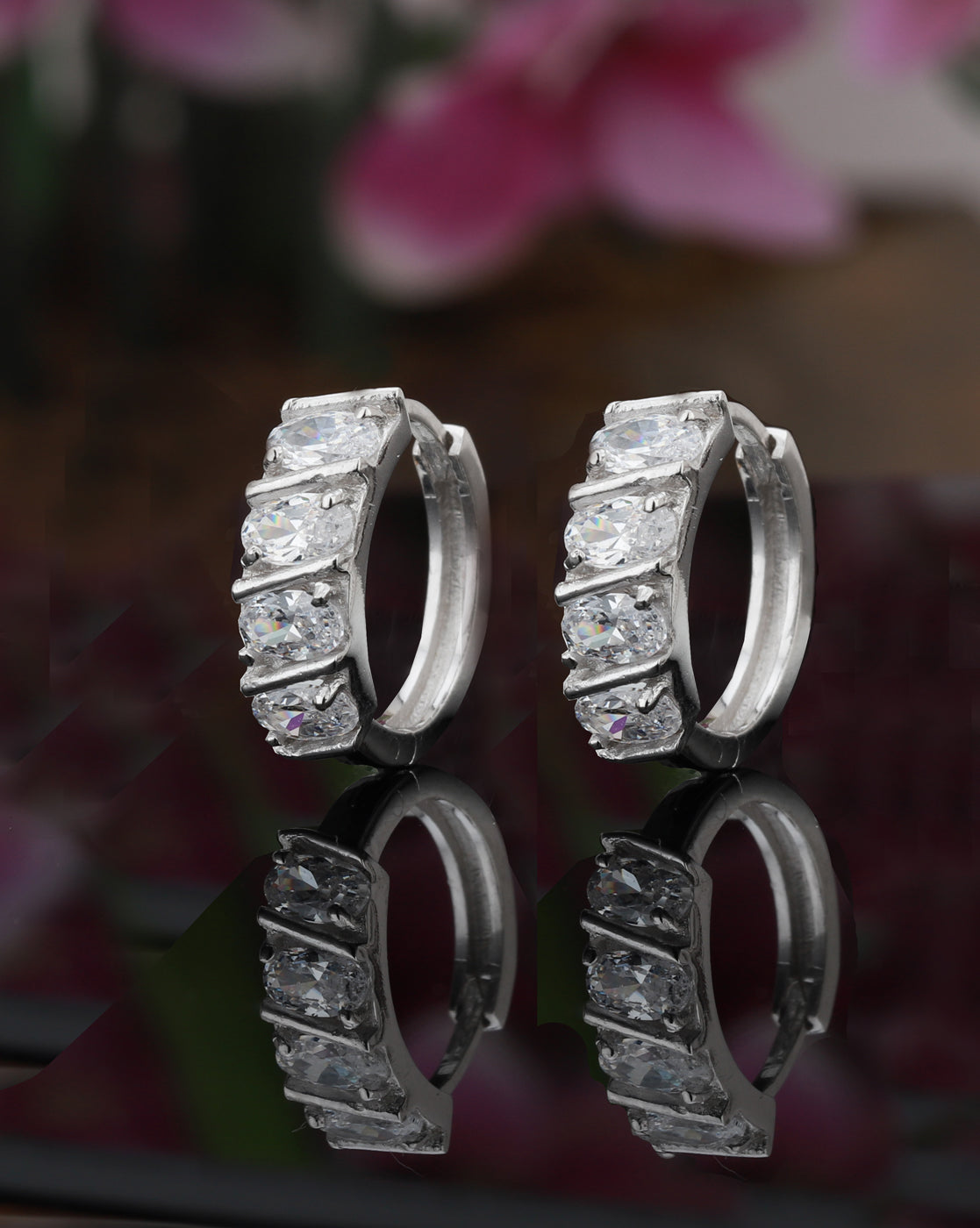 Carlton London Silver-Toned Rhodium-Plated CZ Studded Circular Hoop Earrings