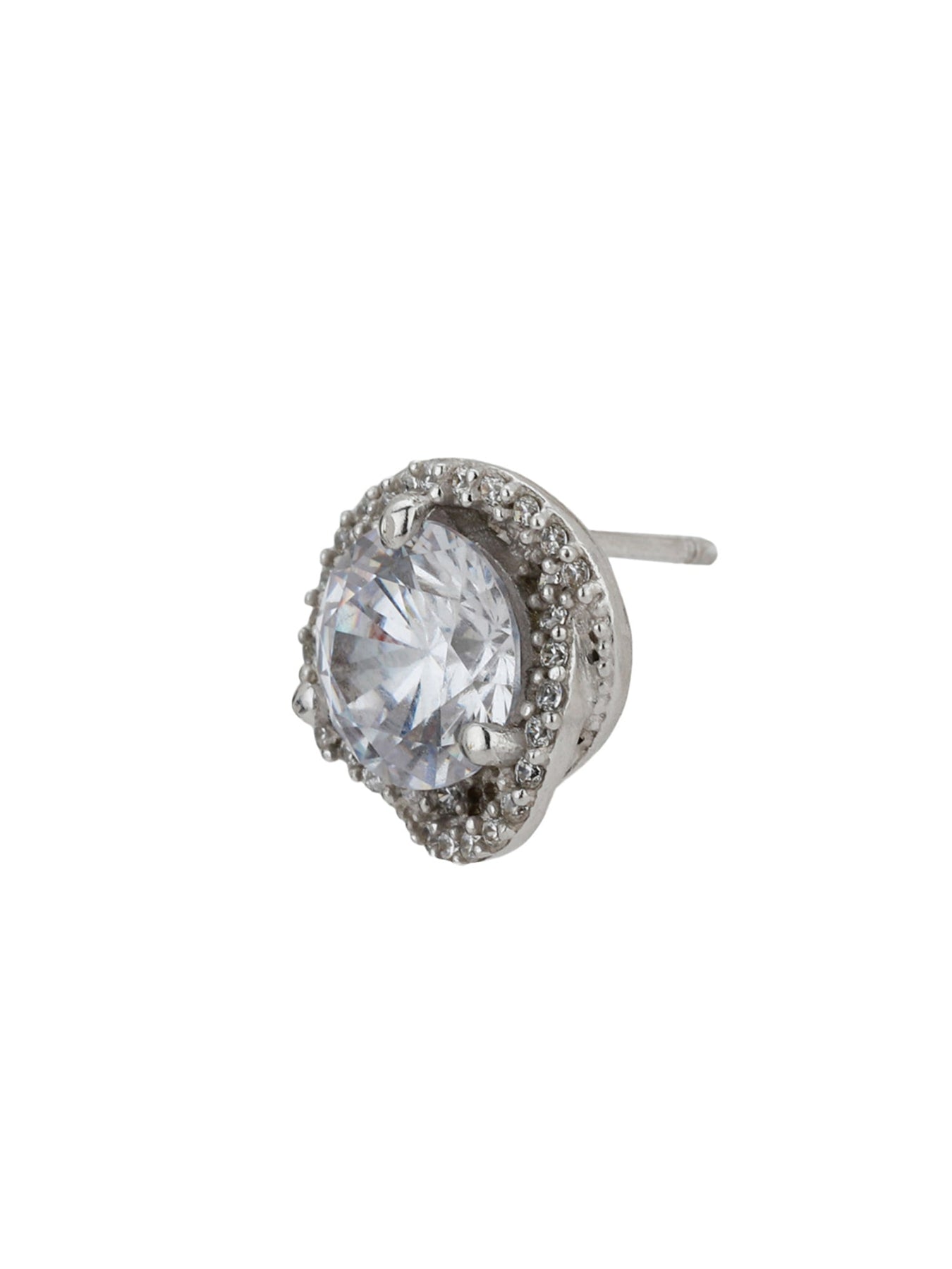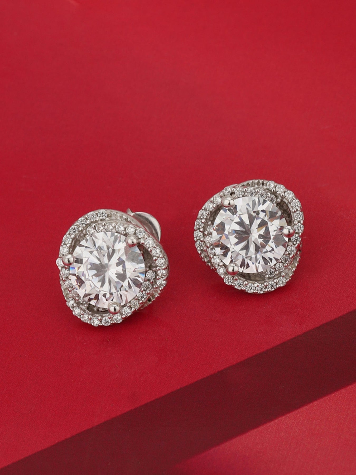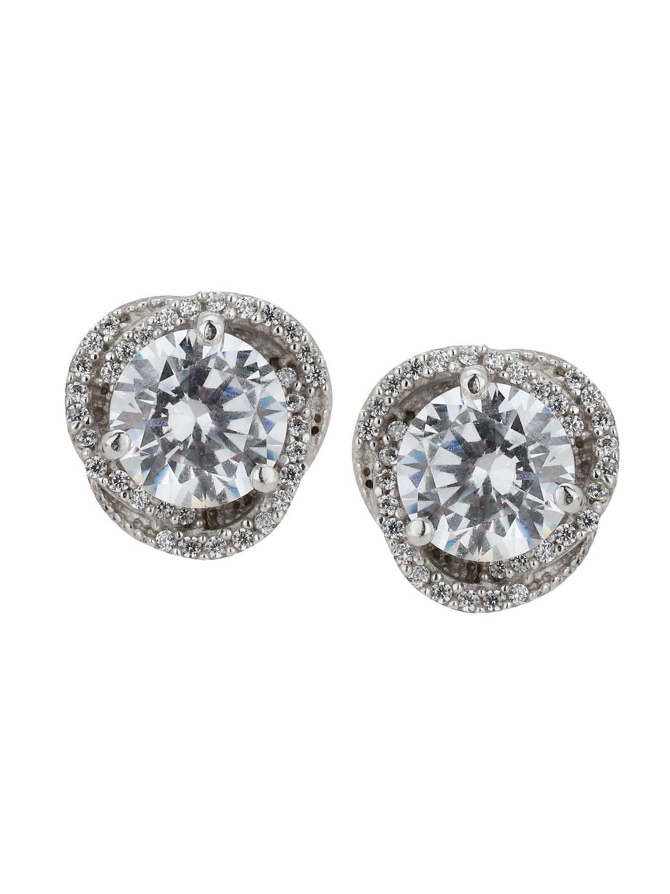 Carlton London Rhodium Plated Silver Toned CZ Studded Stud Earrings For Women
