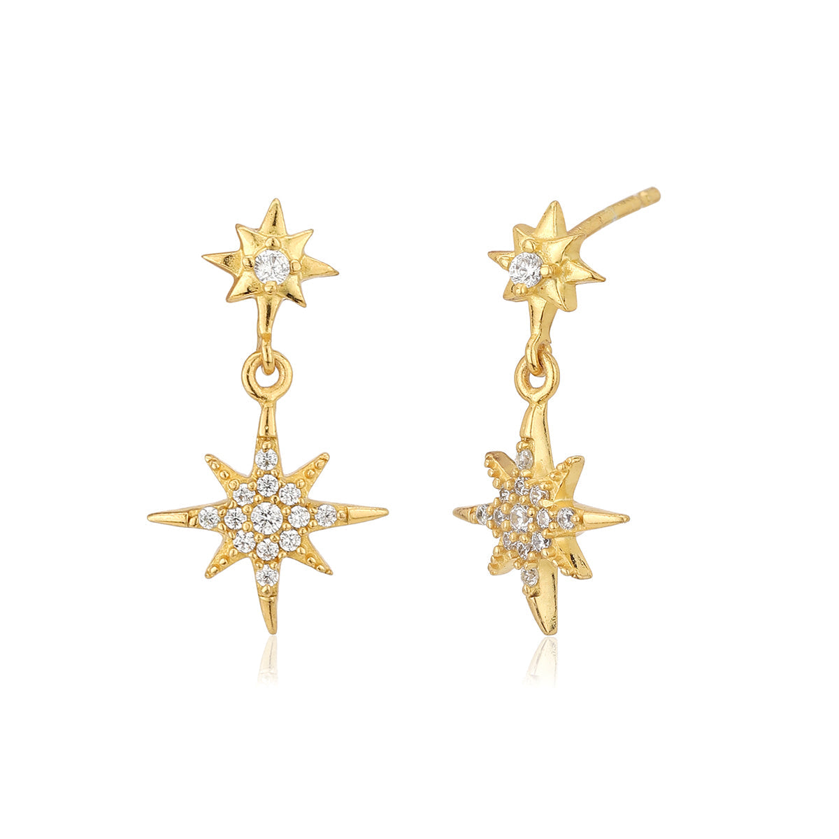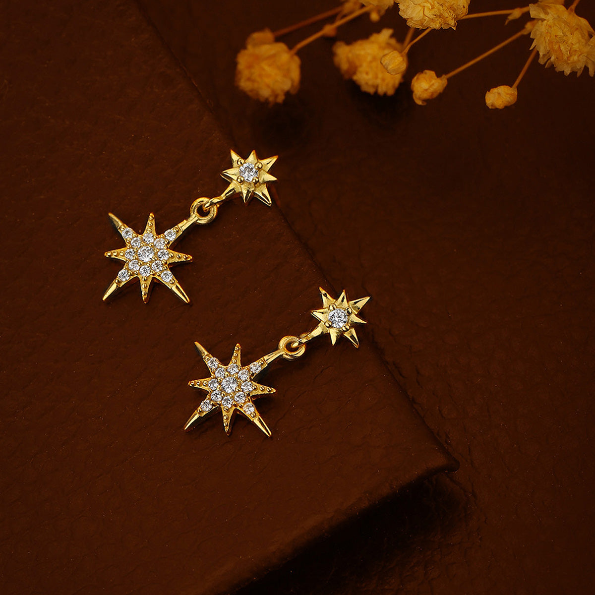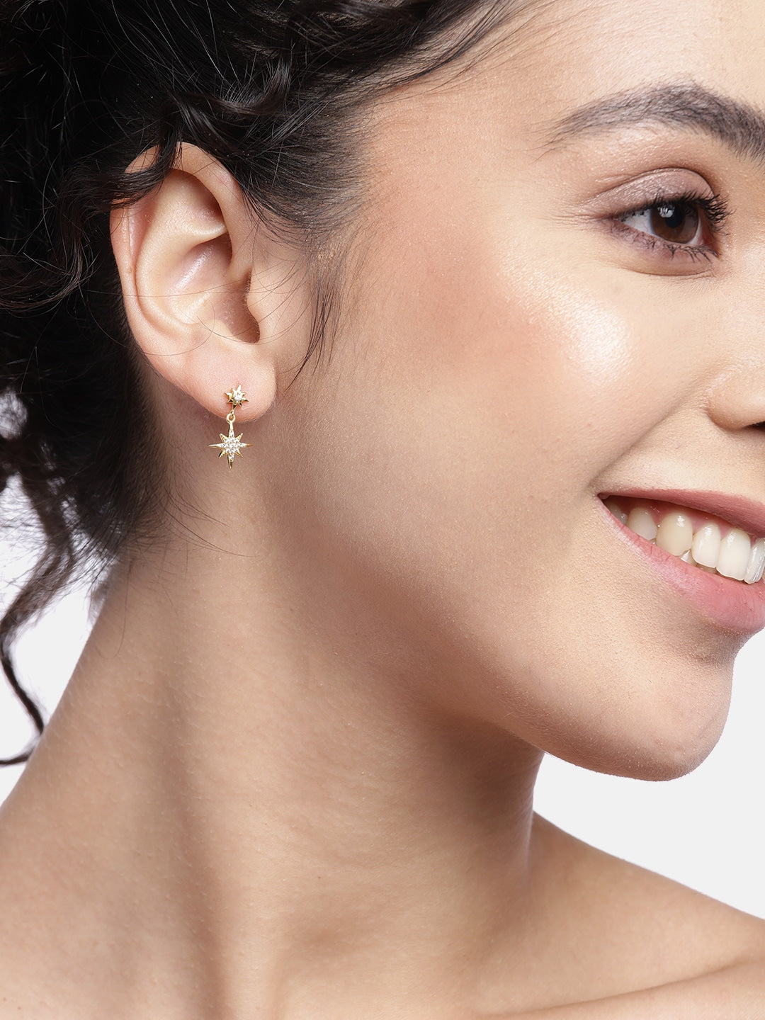 Carlton London Gold Plated CZ Studded Star Shape Drop Earrings For Women