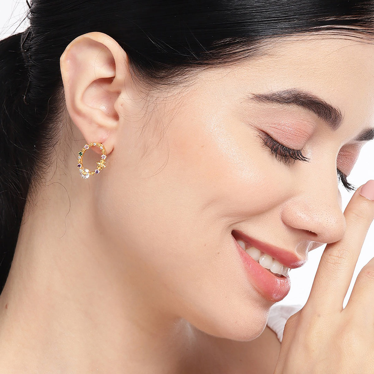 Carlton London Gold-Toned Purple Oval Studs Earrings