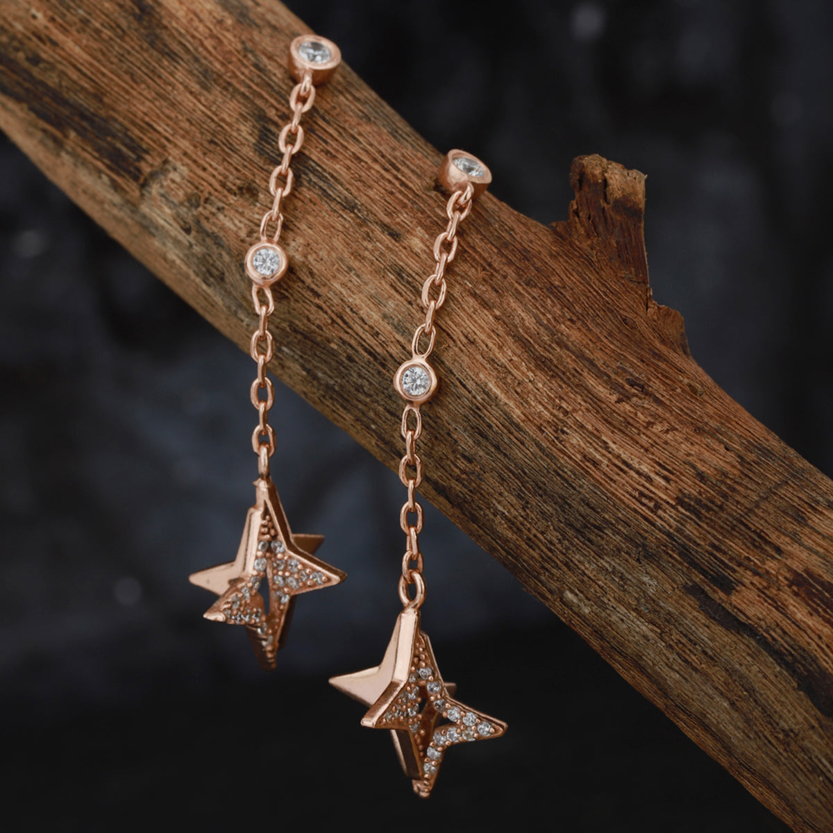 Carlton London Rose Gold Star Shaped Drop Earrings