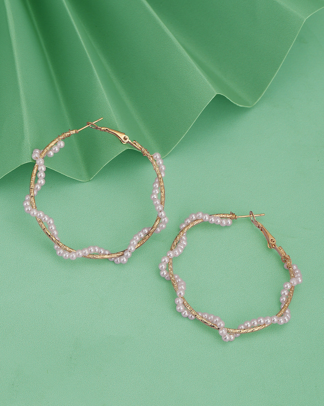 Gold Plated & Pearl Circular Hoop Earring