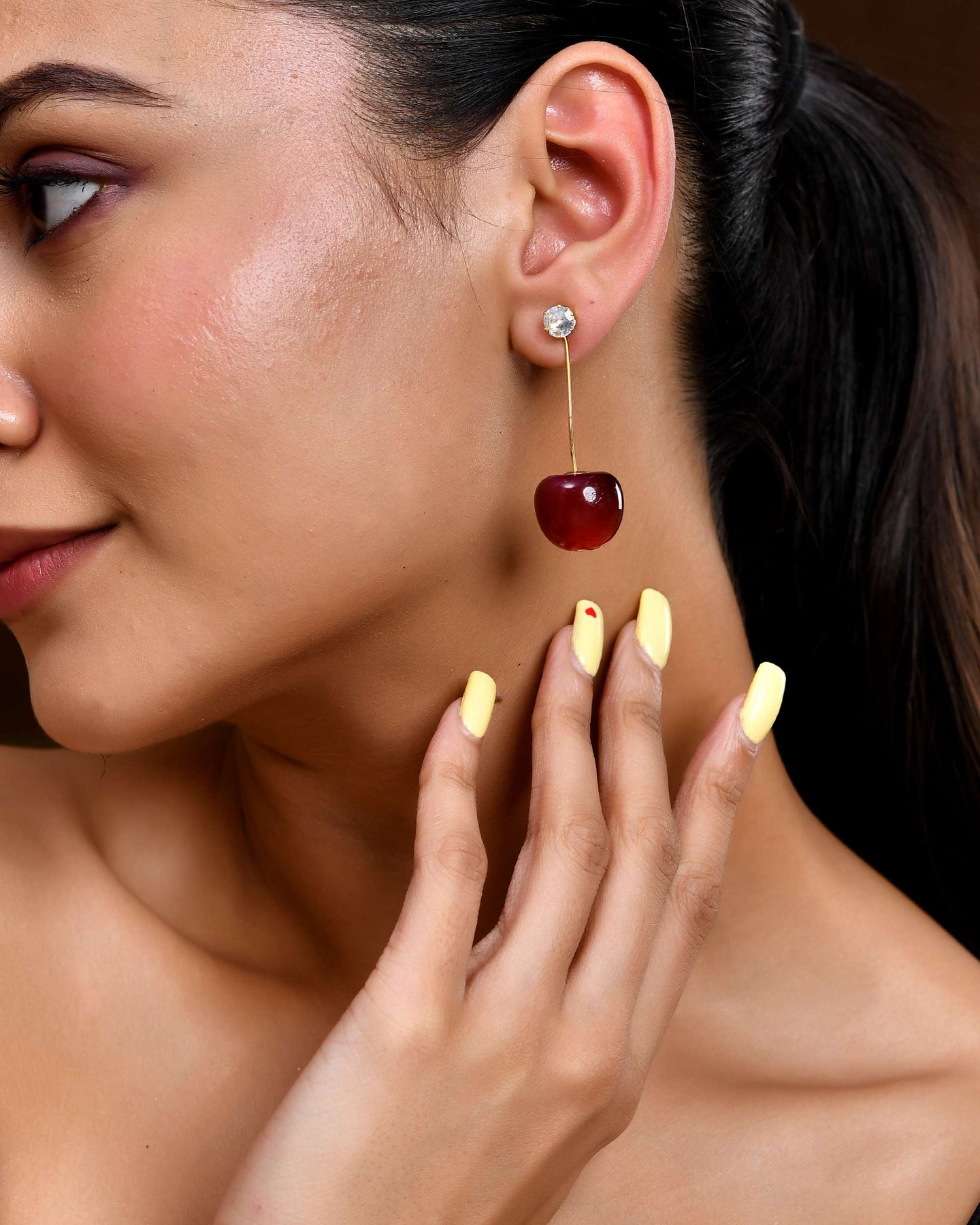 Add A Pop Of Playful Charm To Your Accessory Game With These Ultra-Trendy Cherry Drop Earrings . Designed For The Fun-Loving And Fashion-Forward, These Earrings Feature Glossy Red Cherry-Shaped Drops Suspended On Sleek Gold-Tone Stems And Accented With Sparkly Faux Crystal Studs At The Top.