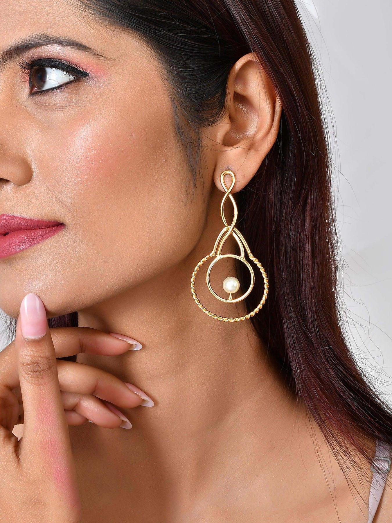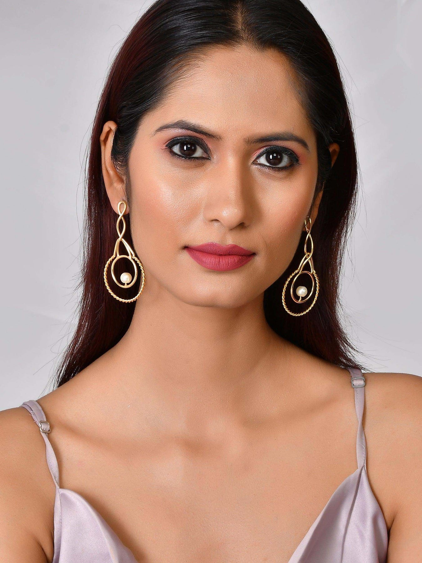 Layered Twisted Golden Earrings Color :Gold Material :Brass Closure :Hoop Care Instructions :Keep Away From Moisture Weight :0.5G