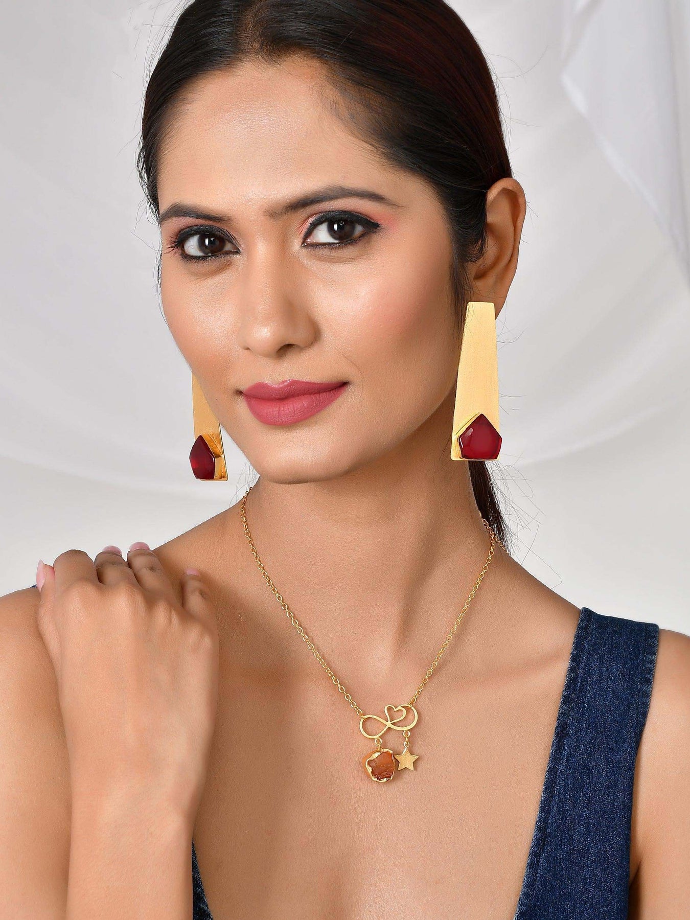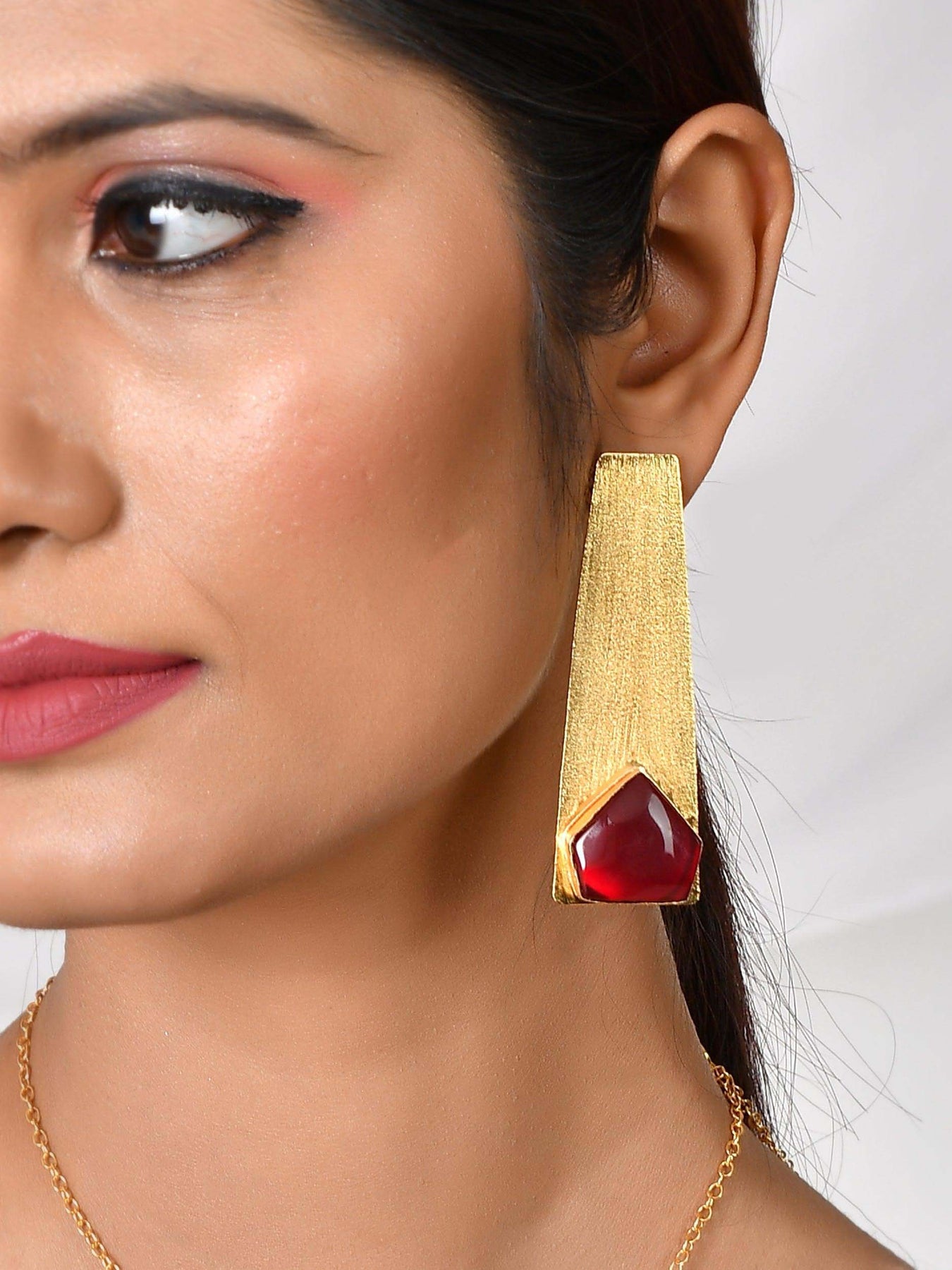 Long Pentagonal Stone Earring Color :Gold Material :Brass Closure :Hoop Care Instructions :Keep Away From Moisture Weight :0.5G