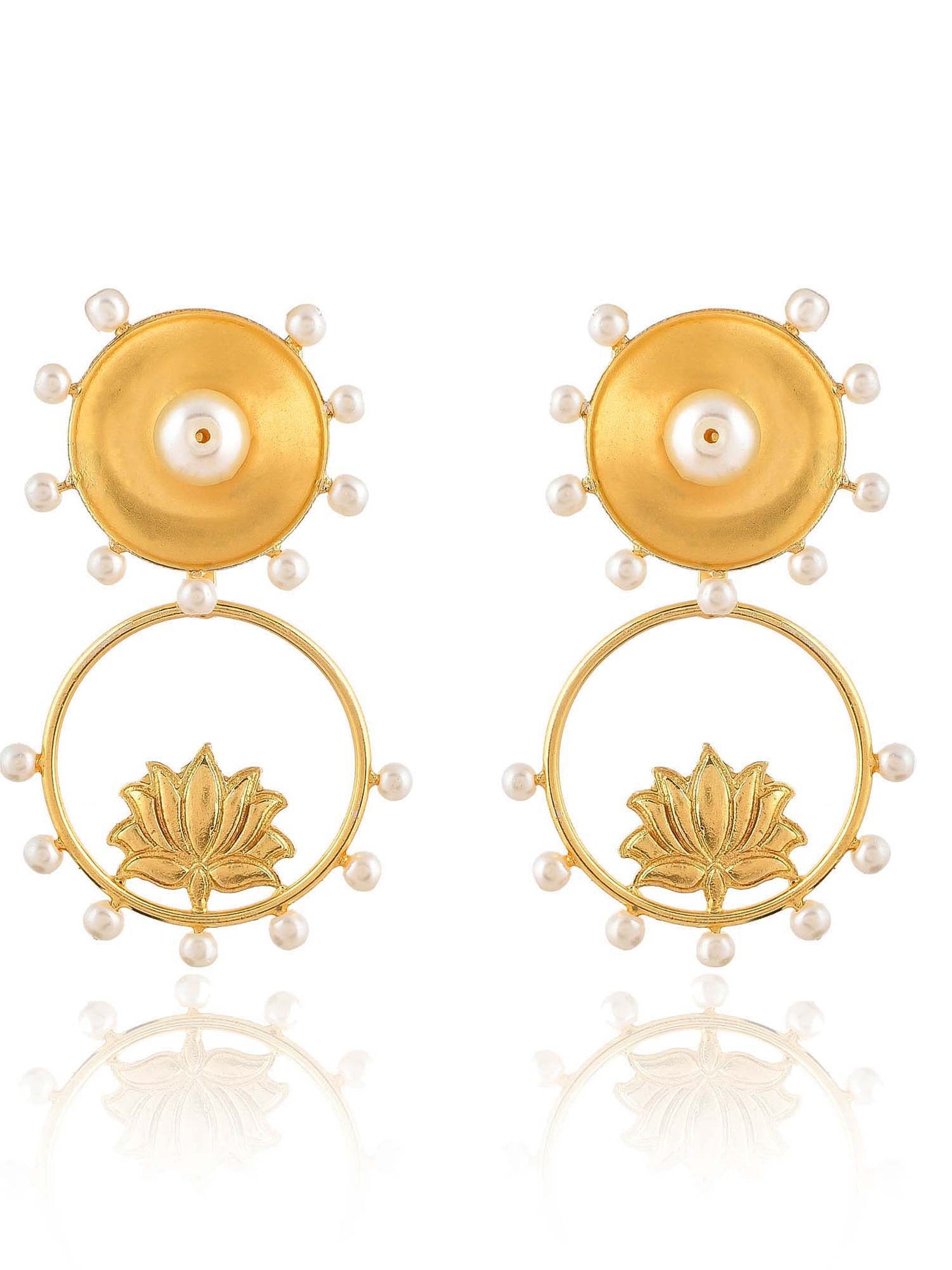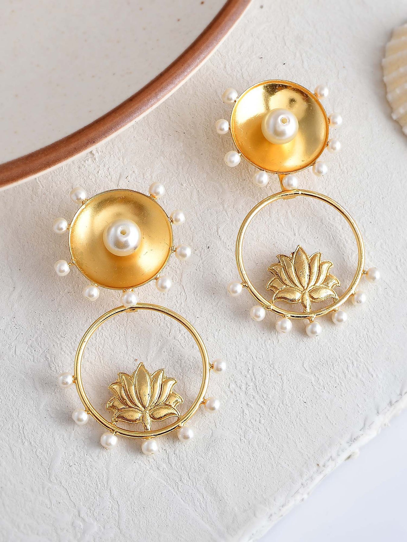 Lotus With Pearl Earrings Color :Gold Material :Brass Closure :Hoop Care Instructions :Keep Away From Moisture Weight :0.5G