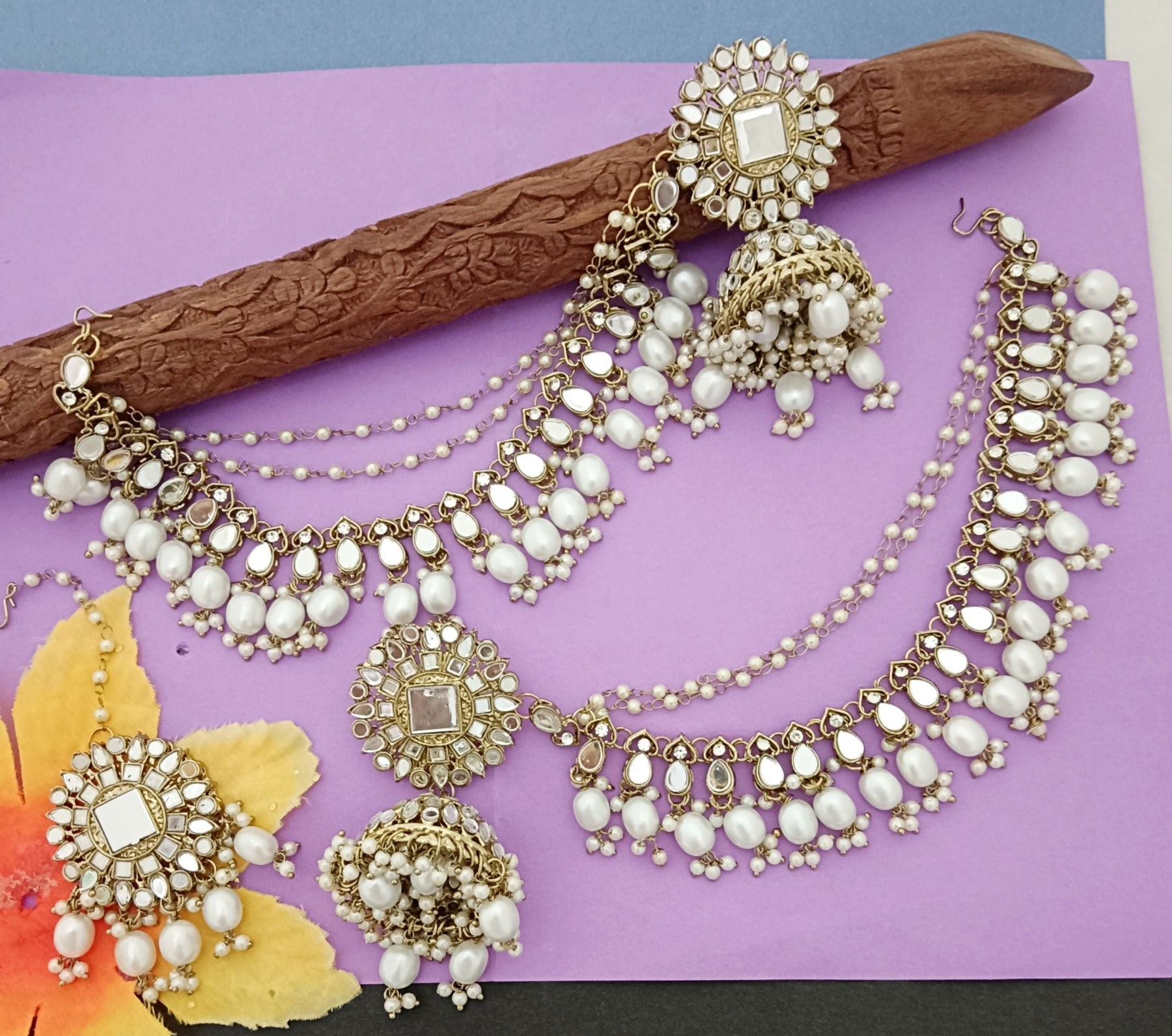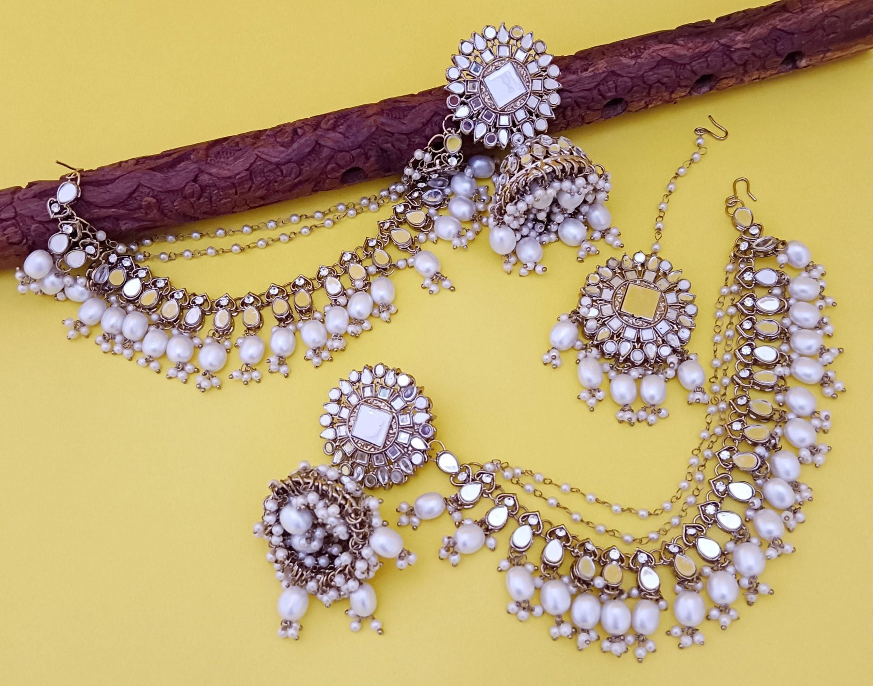 Weight :90 Gm Wash Care :Please Keep Away From Any King Of Water Liquid Pack Contains :1 Pair Of Earrings 1 Pair Of Kaan Chain 1 Tikka