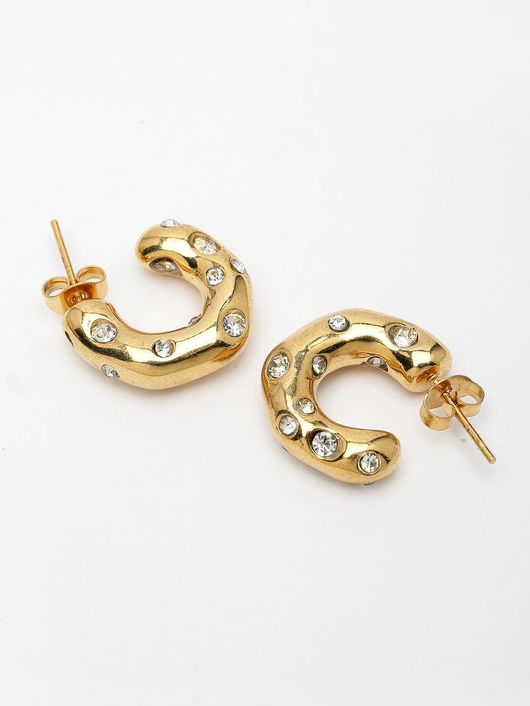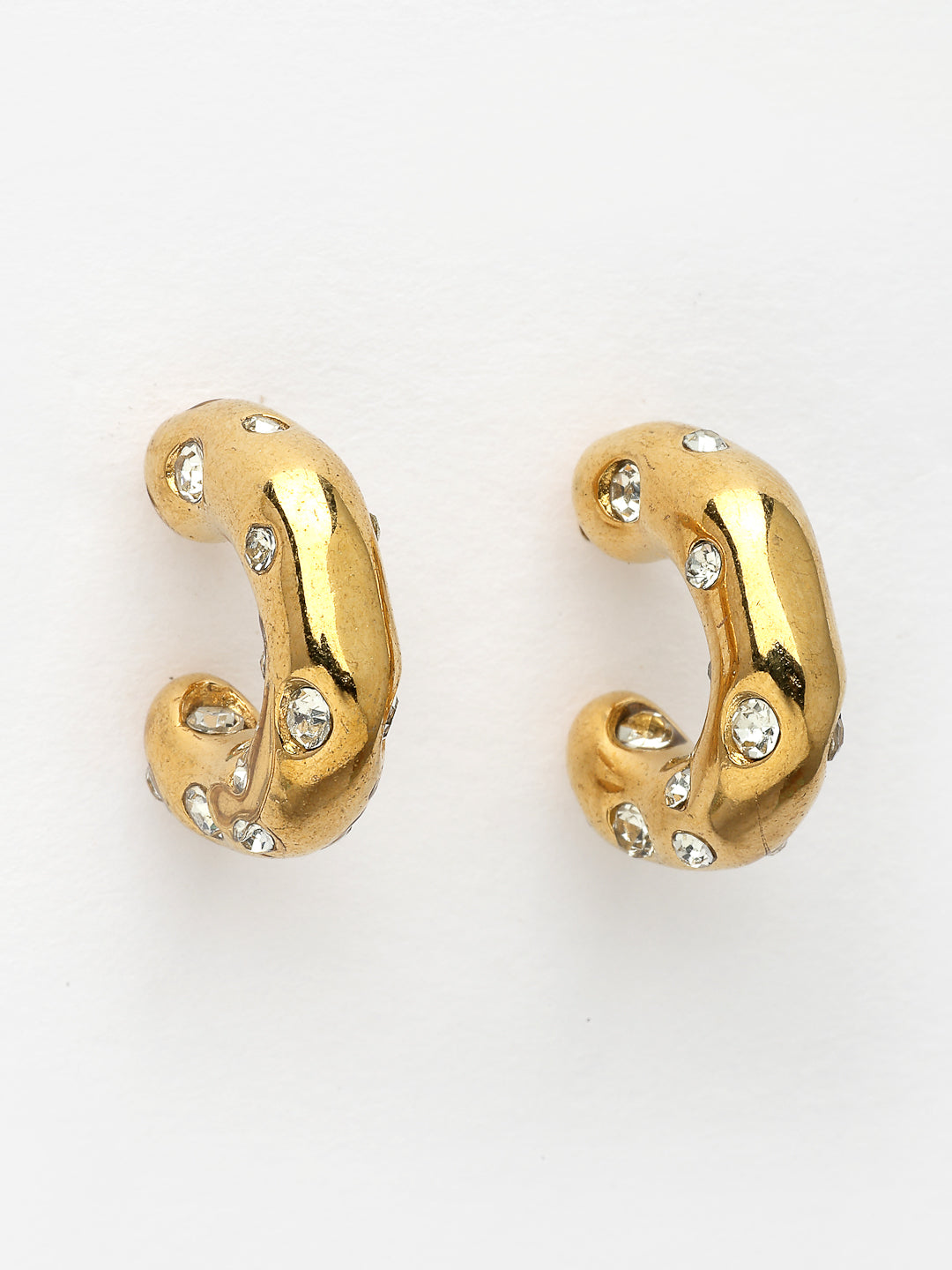 Style Note: The Nvr Women's Gold-Plated Cz-Studded Half Hoop Earrings Offer A Stunning Mix Of Glamour And Sophistication. Adorned With Sparkling Cubic Zirconia Stones, These Half Hoops Catch The Light Beautifully, Adding A Radiant Sparkle To Any Look. The Gold-Plated Finish Enhances Their Luxurious Appeal, Making Them Perfect For Special Occasions Or Elevating Everyday Outfits. Lightweight And Comfortable, They Strike The Perfect Balance Between Statement And Subtlety. Whether You'Re Dressing Up For A Night Out Or Adding Some Shine To Casual Wear, These Earrings Are The Perfect Go-To Accessory.
