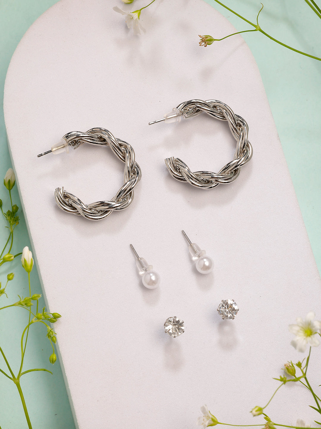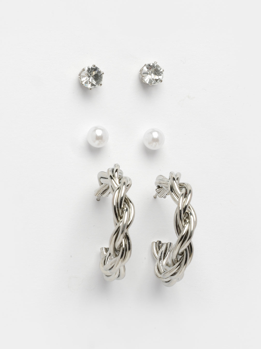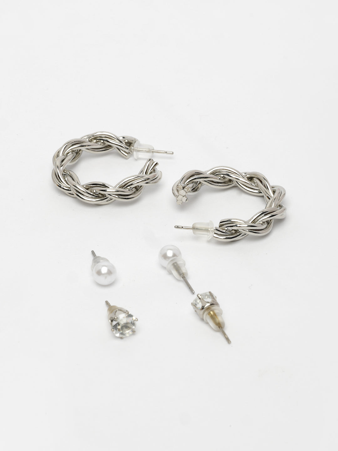 Style Note: Elevate Your Accessory Game With The Nvr Women'S Set Of 3 Silver-Plated Artificial Stones Half Hoop Earrings. Featuring A Sleek Silver-Plated Finish And Dazzling Artificial Stones, These Earrings Exude Contemporary Elegance. The Half-Hoop Design Adds A Modern Edge, Making Them Perfect For Both Casual Outings And Formal Occasions. This Versatile Set Lets You Switch Up Your Style Effortlessly, Whether You Prefer A Minimalist Look Or A Bold Statement. Lightweight And Comfortable, They Are Ideal For All-Day Wear. A Chic Addition To Any Jewelry Collection, These Earrings Blend Timeless Charm With Everyday Sophistication.