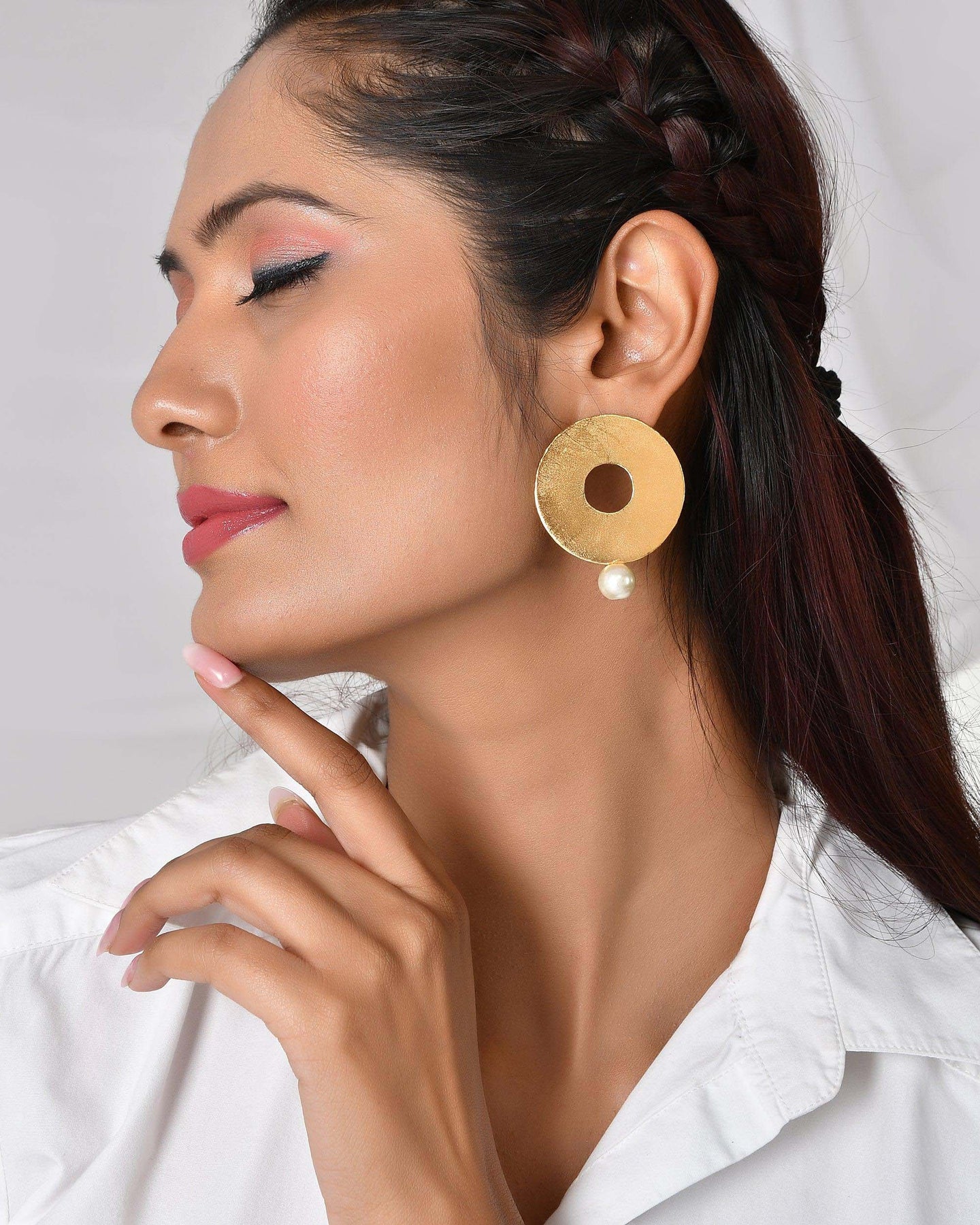 Pearl Concentric Circle Earring Color :Gold Material :Brass Closure :Hoop Care Instructions :Keep Away From Moisture Weight :0.5G