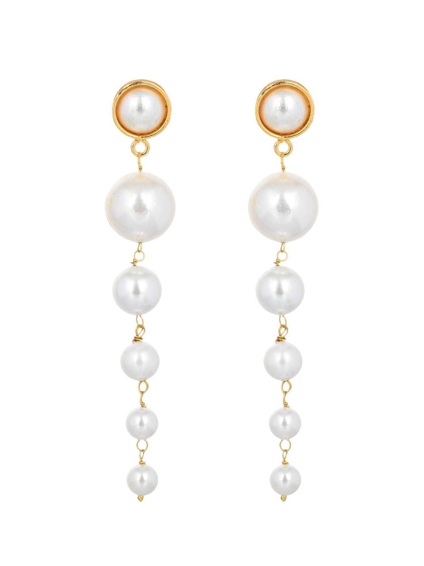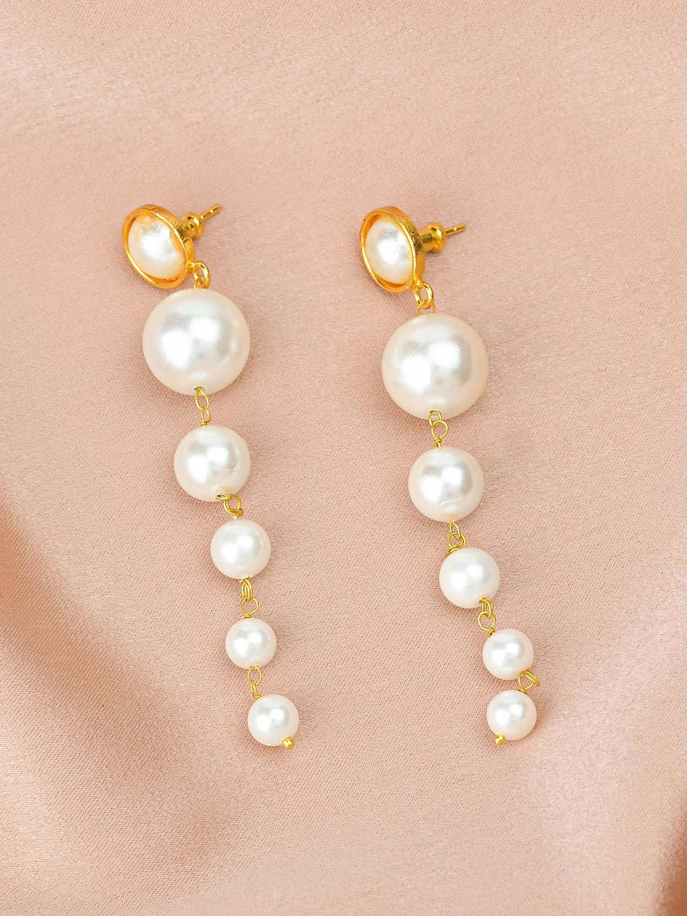 Pearl Dangler Earring Color :Gold Material :Brass Closure :Hoop Care Instructions :Keep Away From Moisture Weight :0.5G
