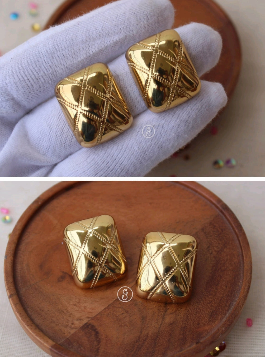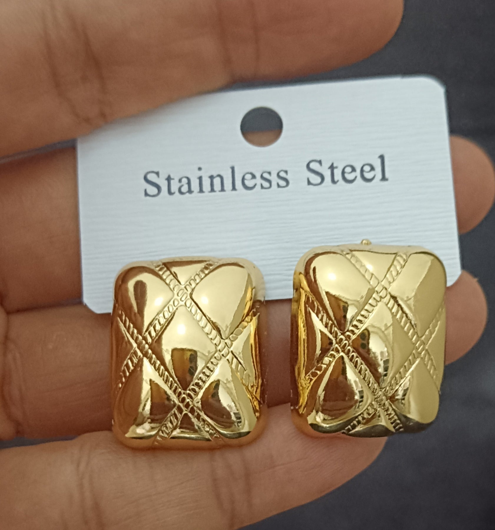 18K Gold Plated Stainless Steel Anti Tarnish Rectangle Shape Earrings