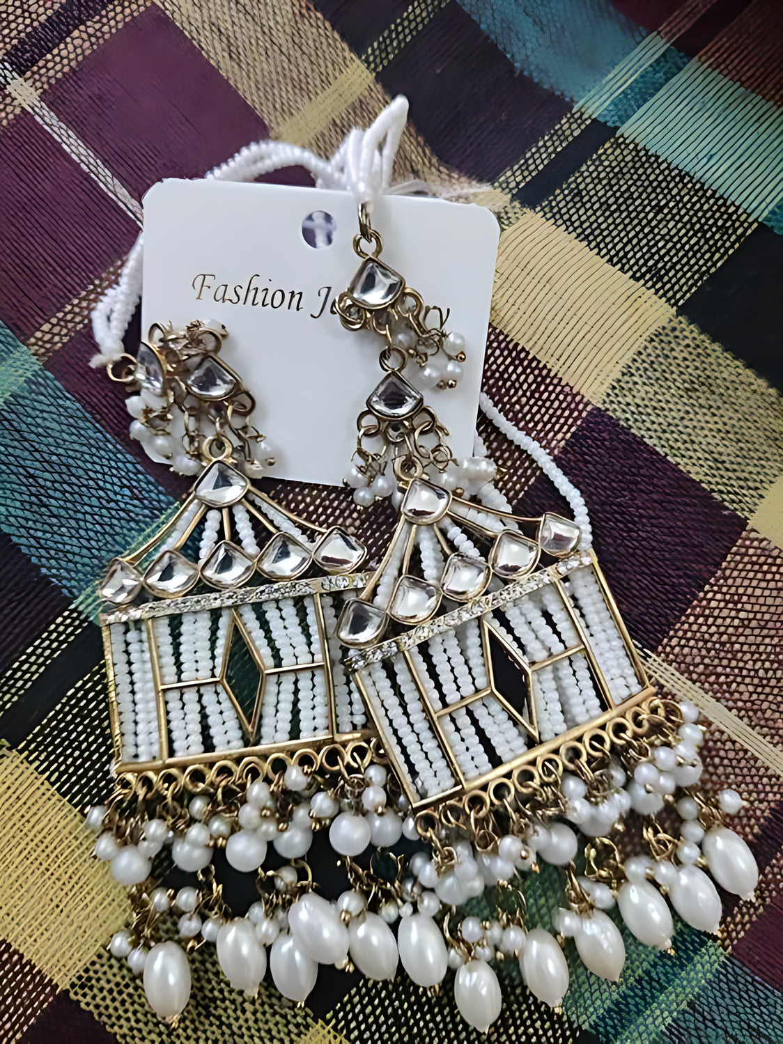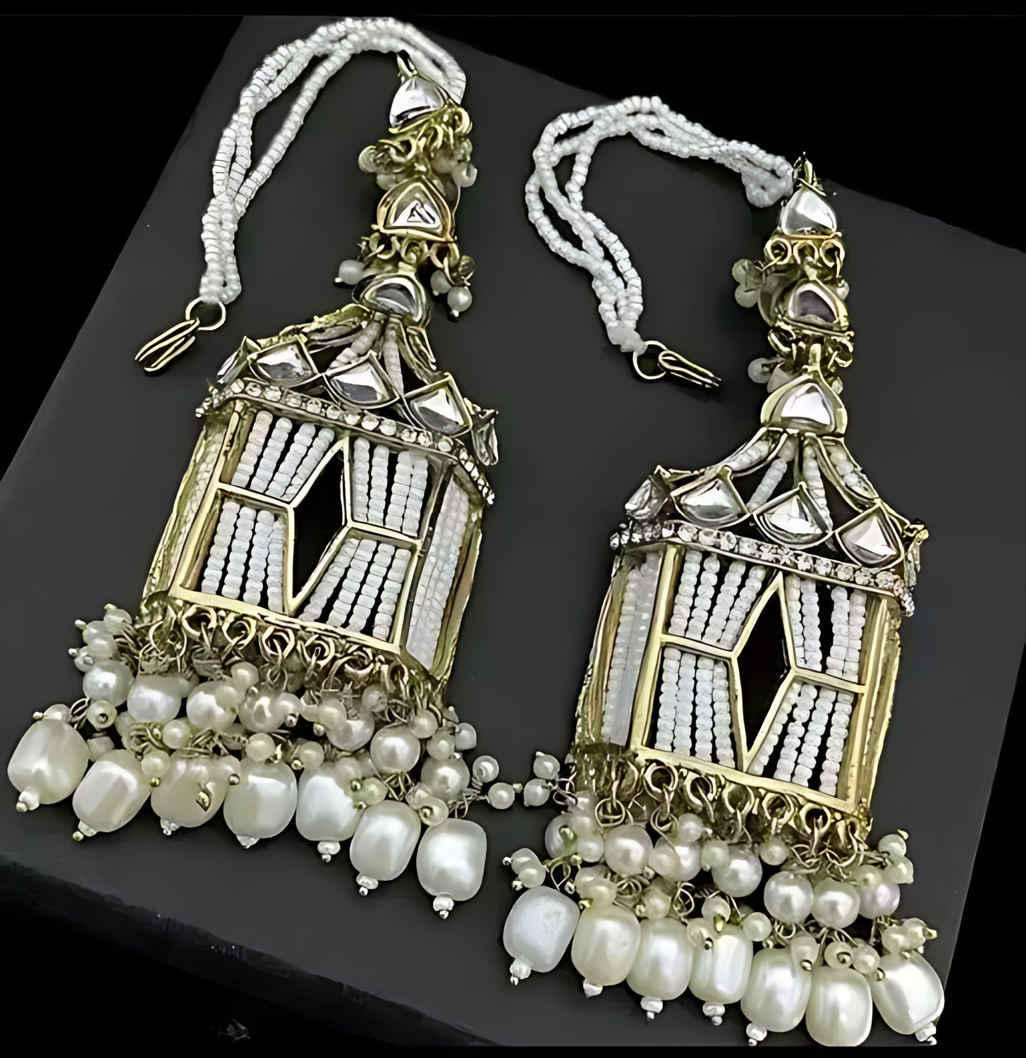 The Ornate, Cage-Like Structure Creates A Mesmerizing Silhouette, Perfect For Complementing Both Formal And Casual Outfits. The Pearls, Arranged In Cascading Strands, Add A Touch Of Elegant Sophistication. These Earrings Are A Versatile Accessory, Suitable For Weddings, Parties, And Cultural Festivals.