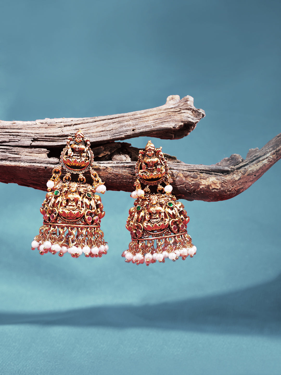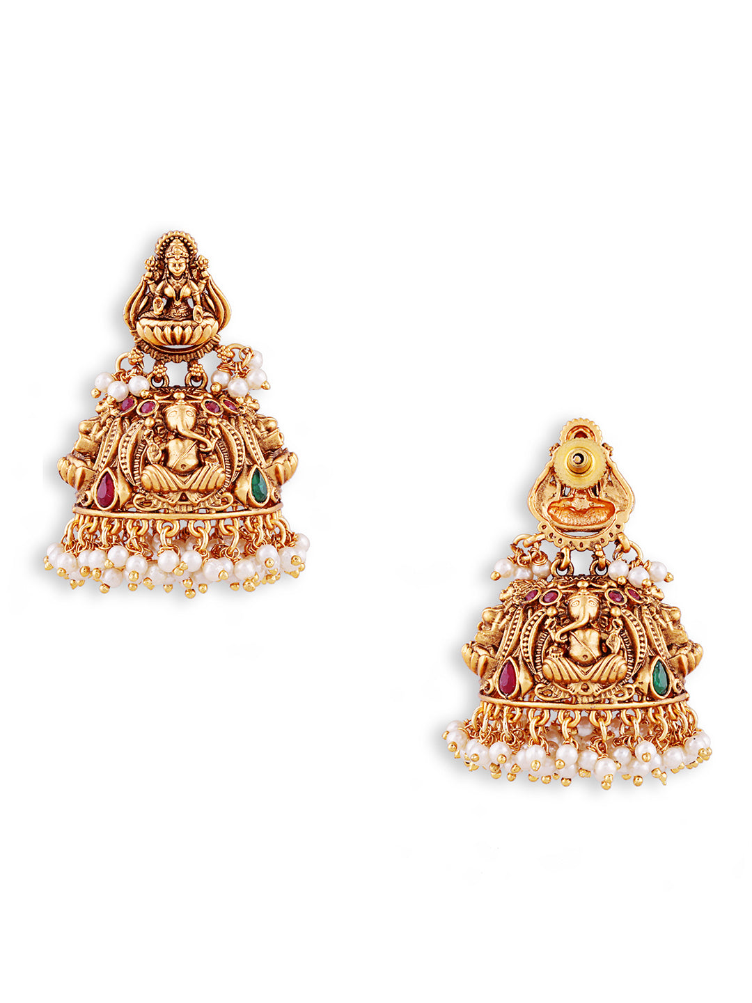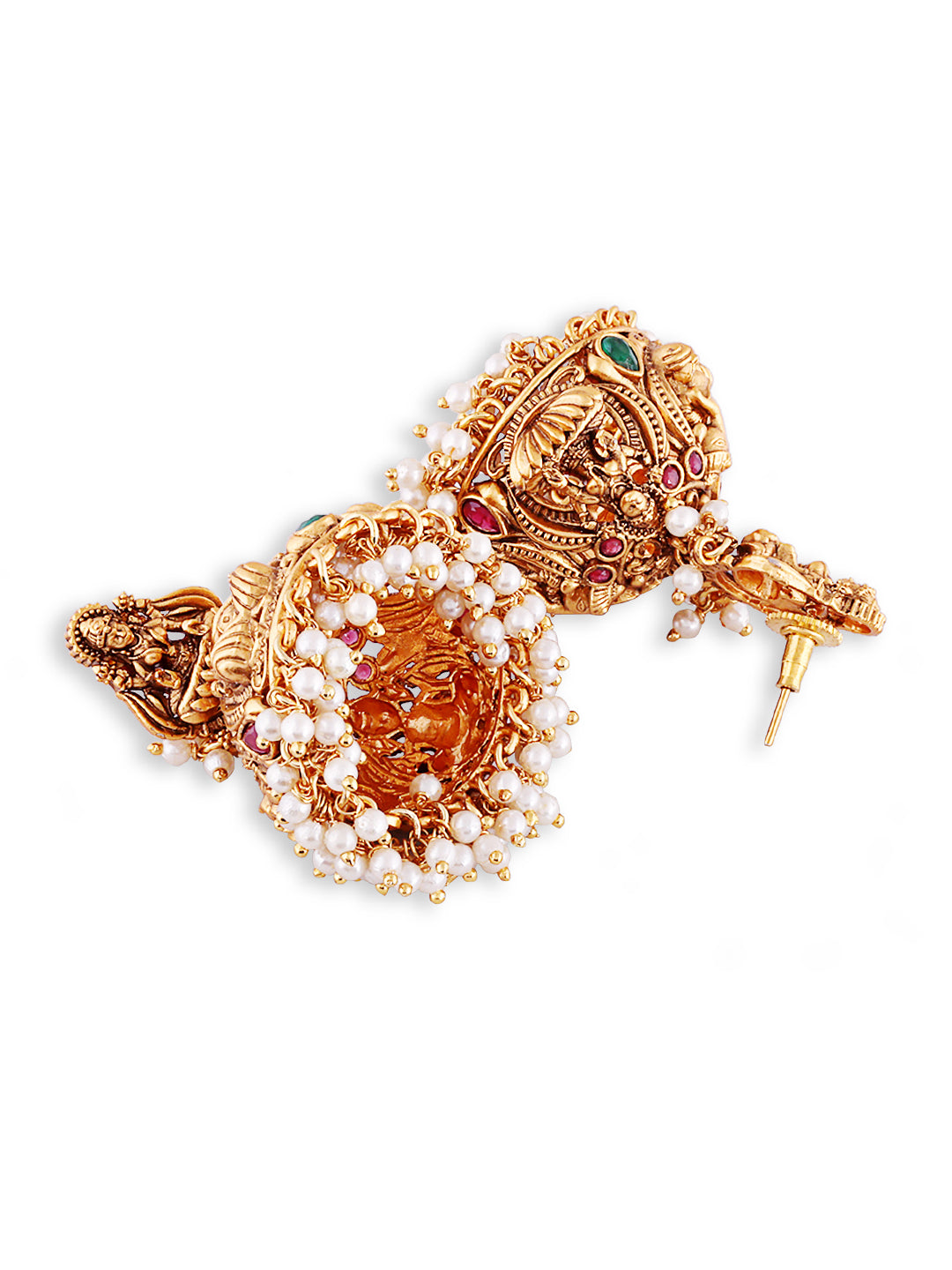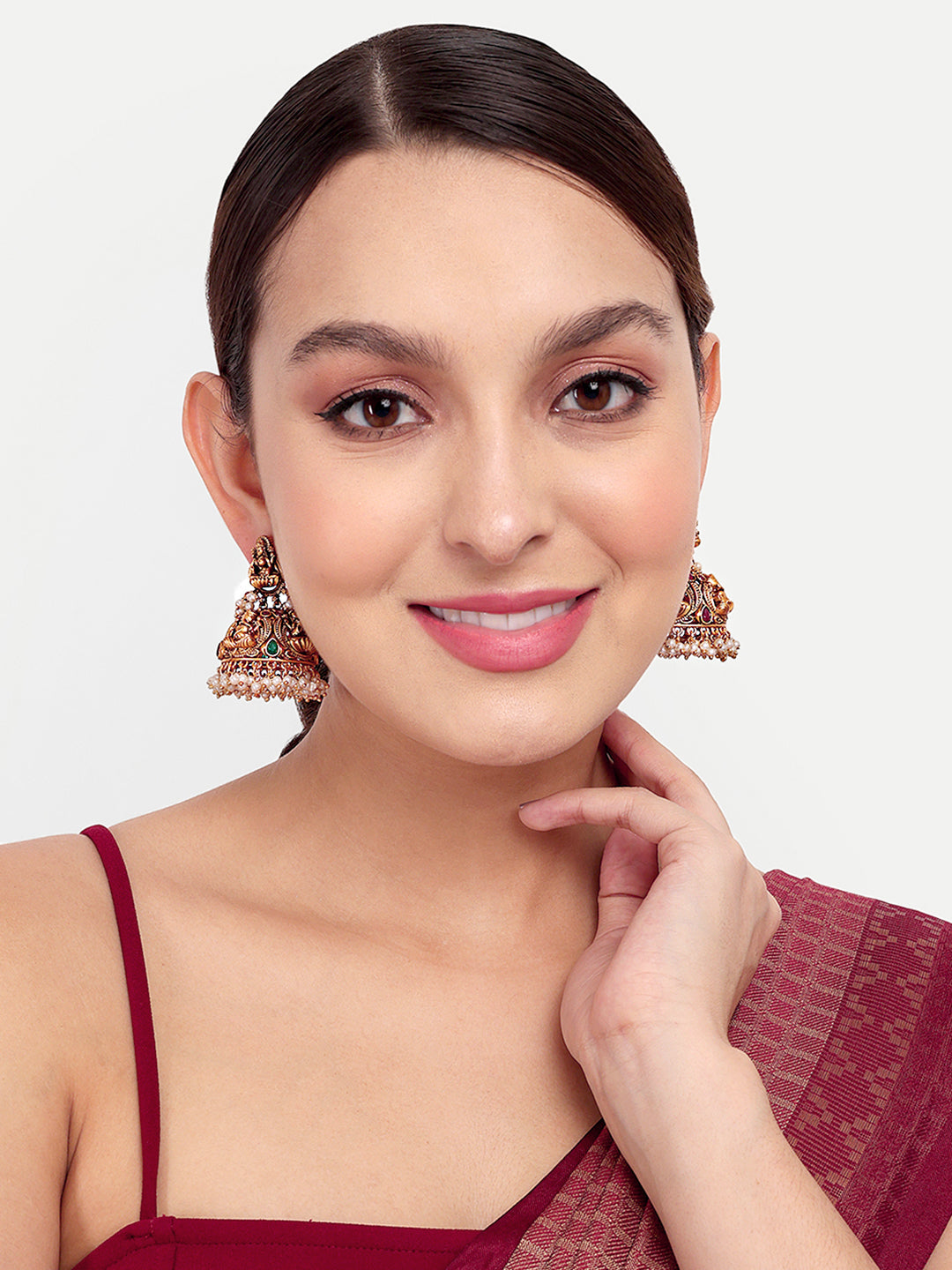 Women's Gold Plated Antique South Indian Kempstone Studded Earrings - Abdesigns