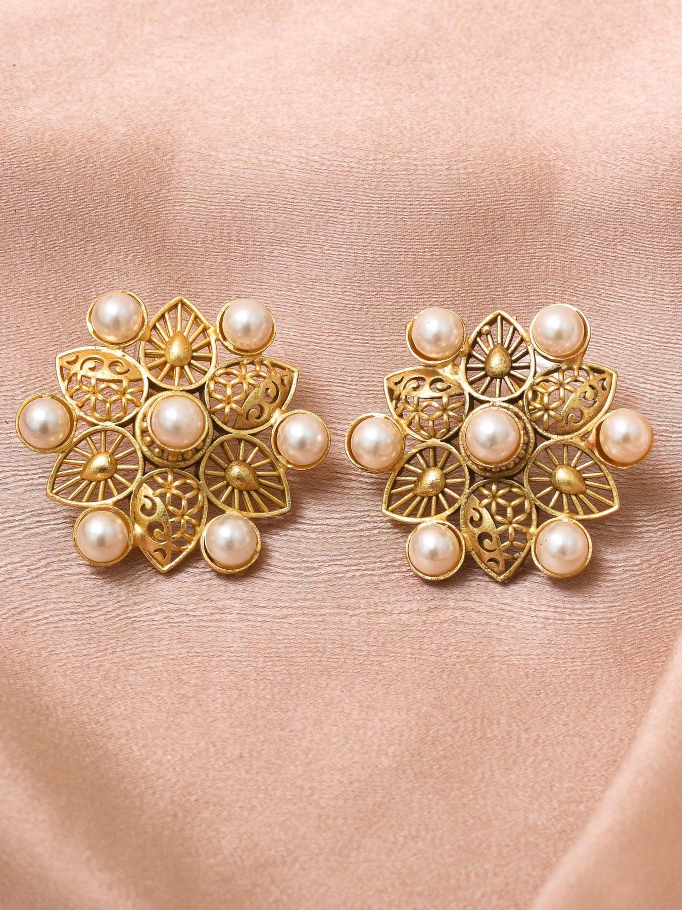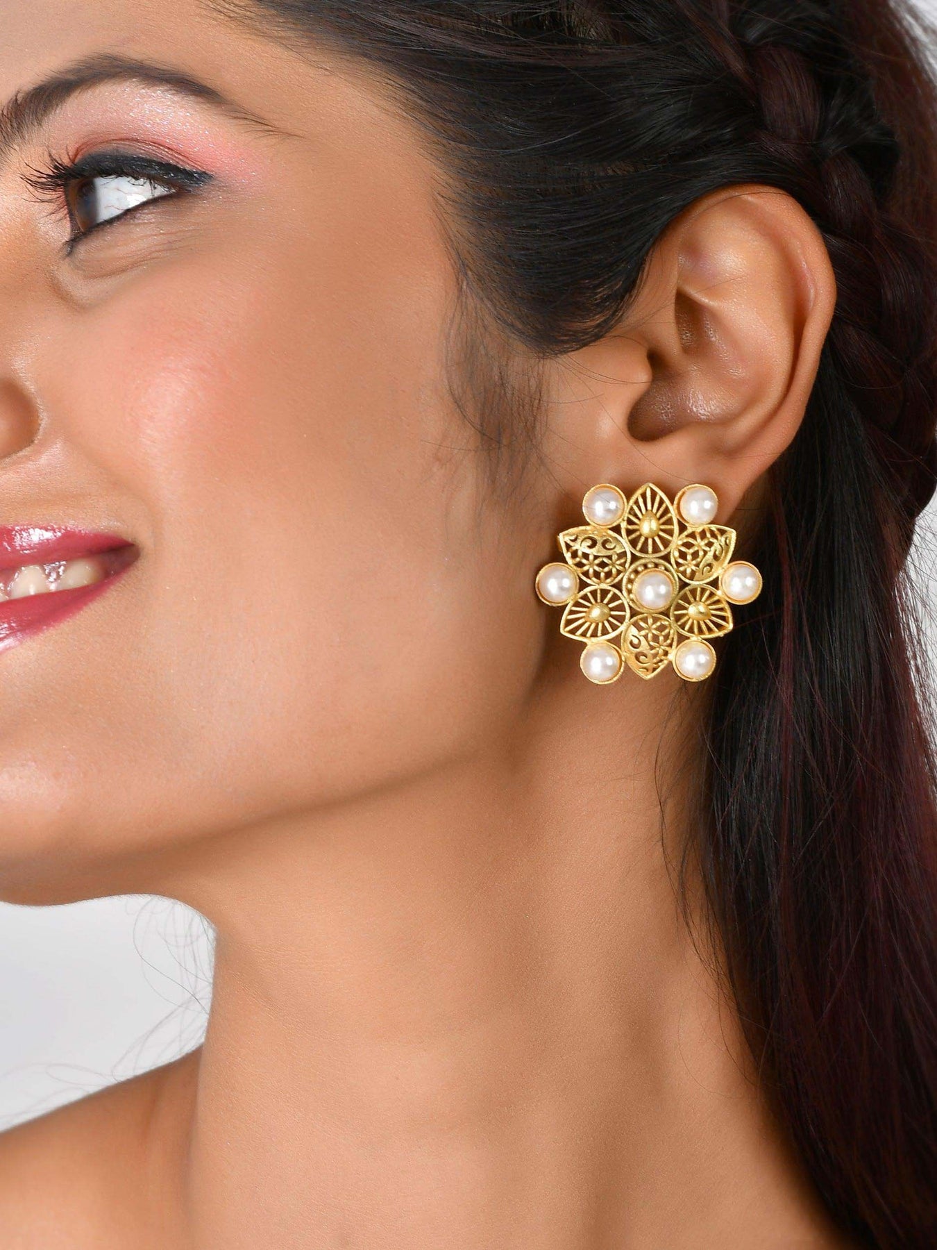 Textured Petal & Pearl Earring Color :Gold Material :Brass Closure :Hoop Care Instructions :Keep Away From Moisture Weight :0.5G