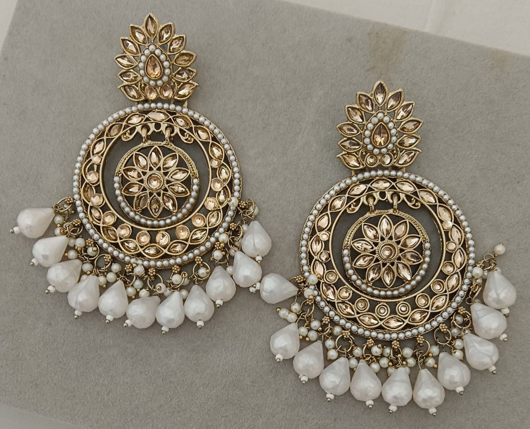 Beautiful Kundan Pearls Chandbali Earrings Set