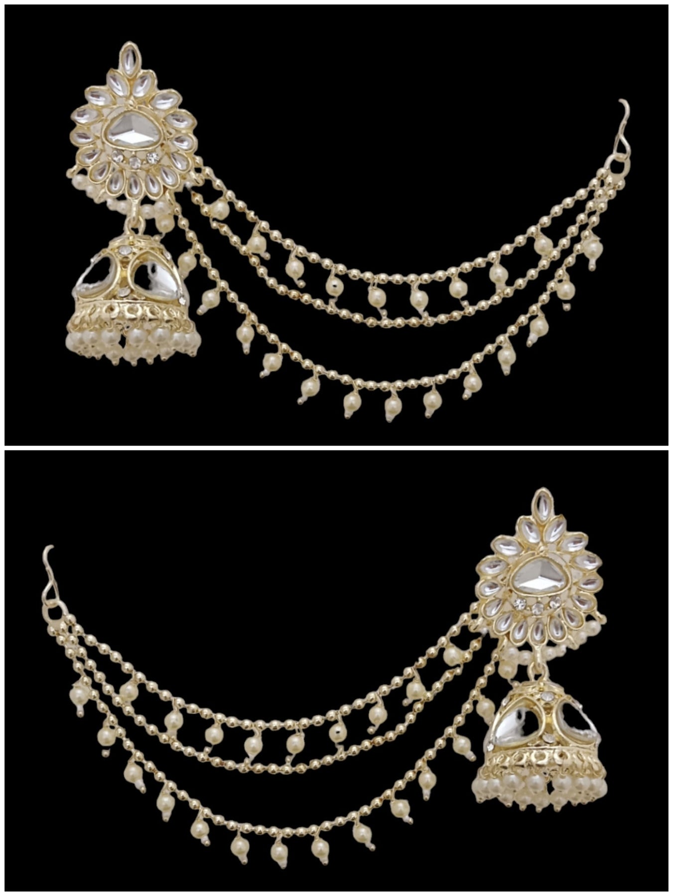Pack Contains :1 Pair Of Earrings 1 Pair Of Kaan Chain 1 Tikka
