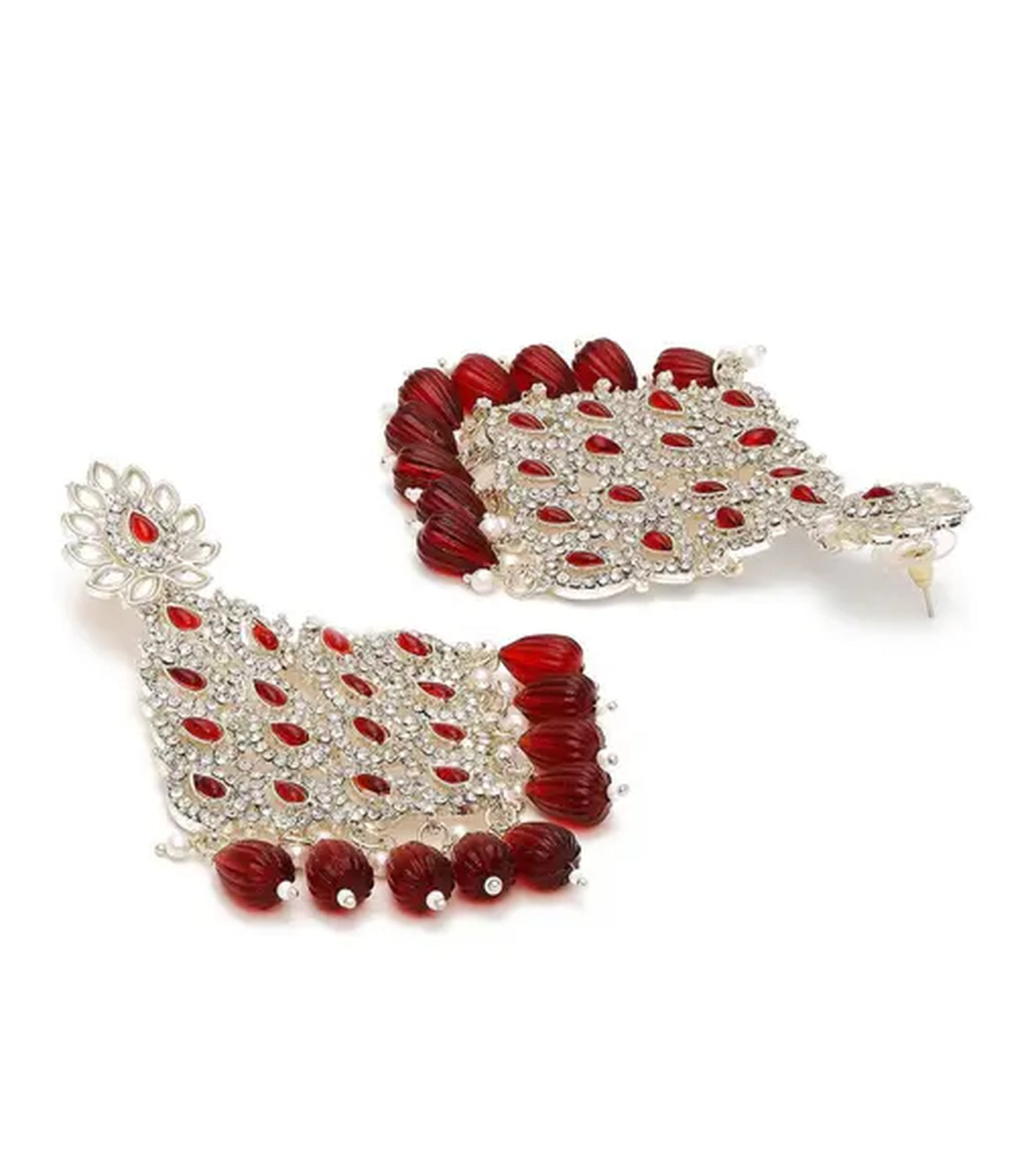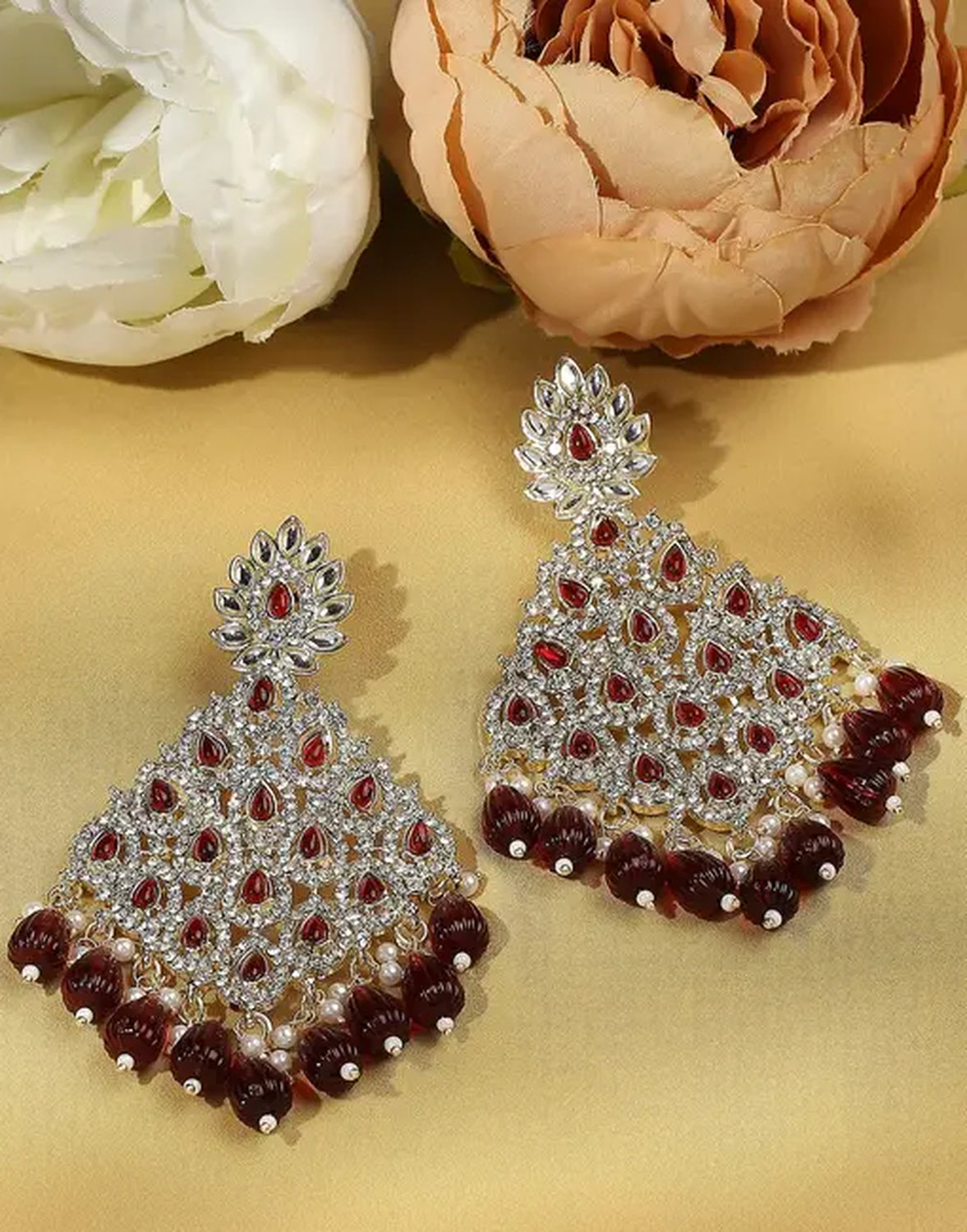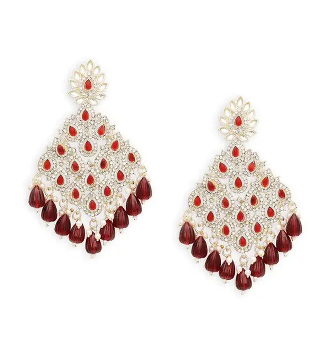Luxurious Maroon Chandelier Earrings - Traditional Indian Statement Jewelry For Wedding & Festival Elegance