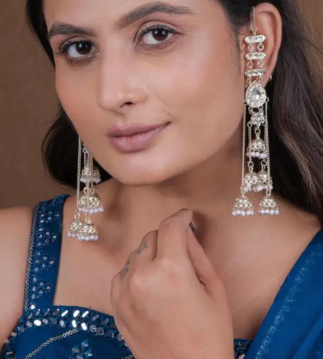 Silver Kashmiri Jhumka Earrings - Traditional Pearl Drop Chandelier Earrings For Wedding & Festival Wear