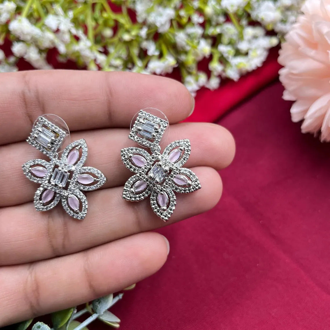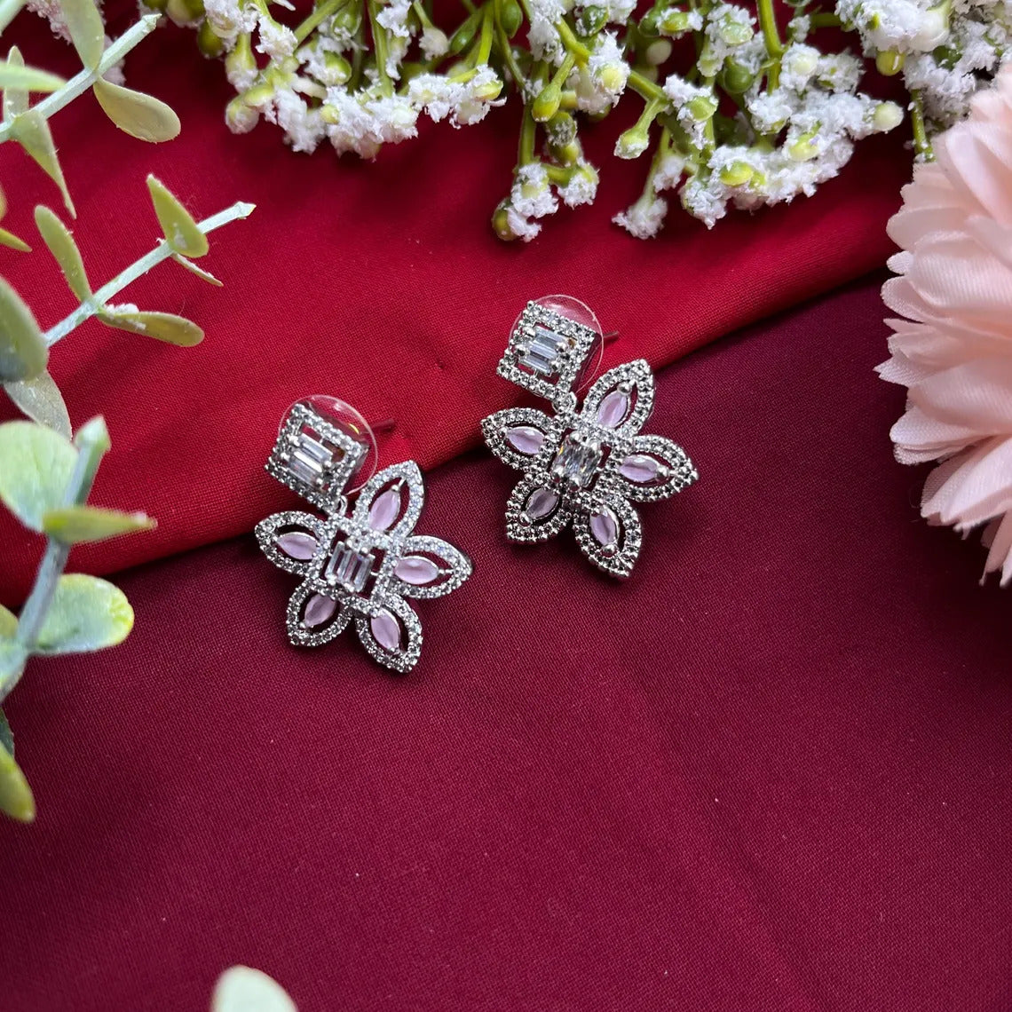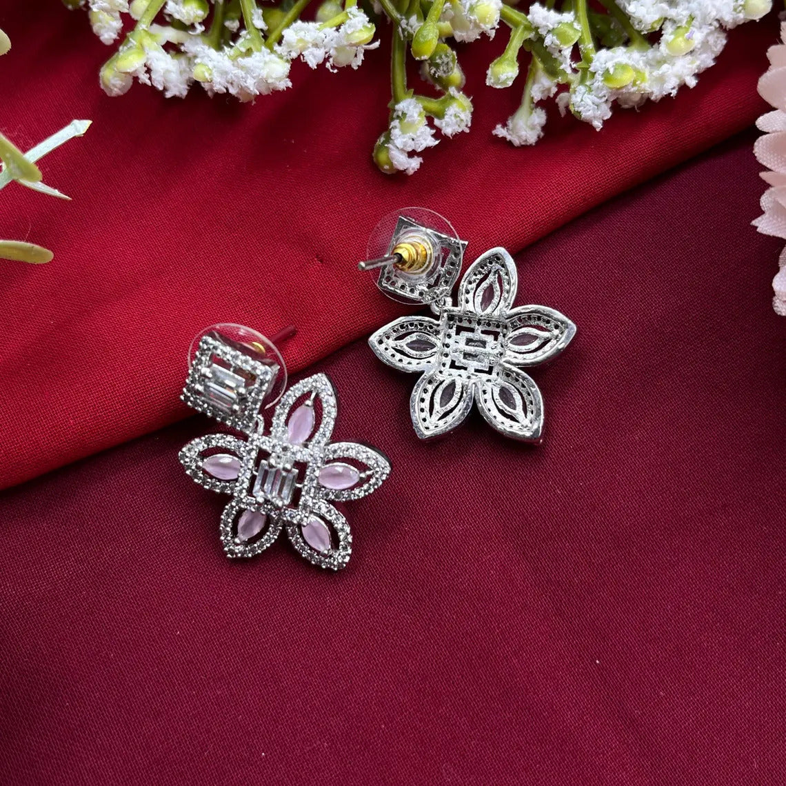 Make A Statement With These Stunning Flower Stud Earrings! The Earrings Feature A Unique Design With Pink Or Teal Crystals Set In A Silver-Toned Metal. The Earrings Are Lightweight And Comfortable To Wear, Making Them Perfect For Everyday Use Or Special Occasions.