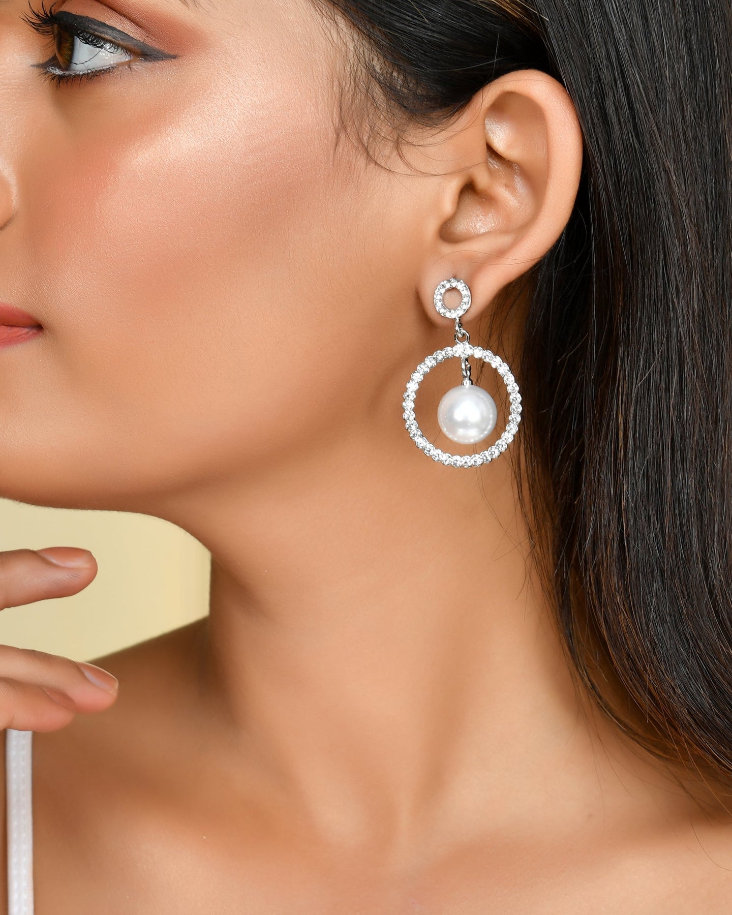 Introducing The Voj Women Sliver-Plated Pearl Circular Studs Earrings, A Timeless And Elegant Addition To Any Jewelry Collection. Crafted With Precision, These Stud Earrings Feature A Lustrous Pearl Set In A Sliver-Plated Circular Design. Made From High-Quality Stainless Steel, These Earrings Are Not Only Durable But Also Hypoallergenic, Ensuring Comfort For All-Day Wear. Perfect For Both Casual And Formal Occasions, These Pearl Stud Earrings Effortlessly Elevate Any Outfit With Their Classic And Sophisticated Charm.