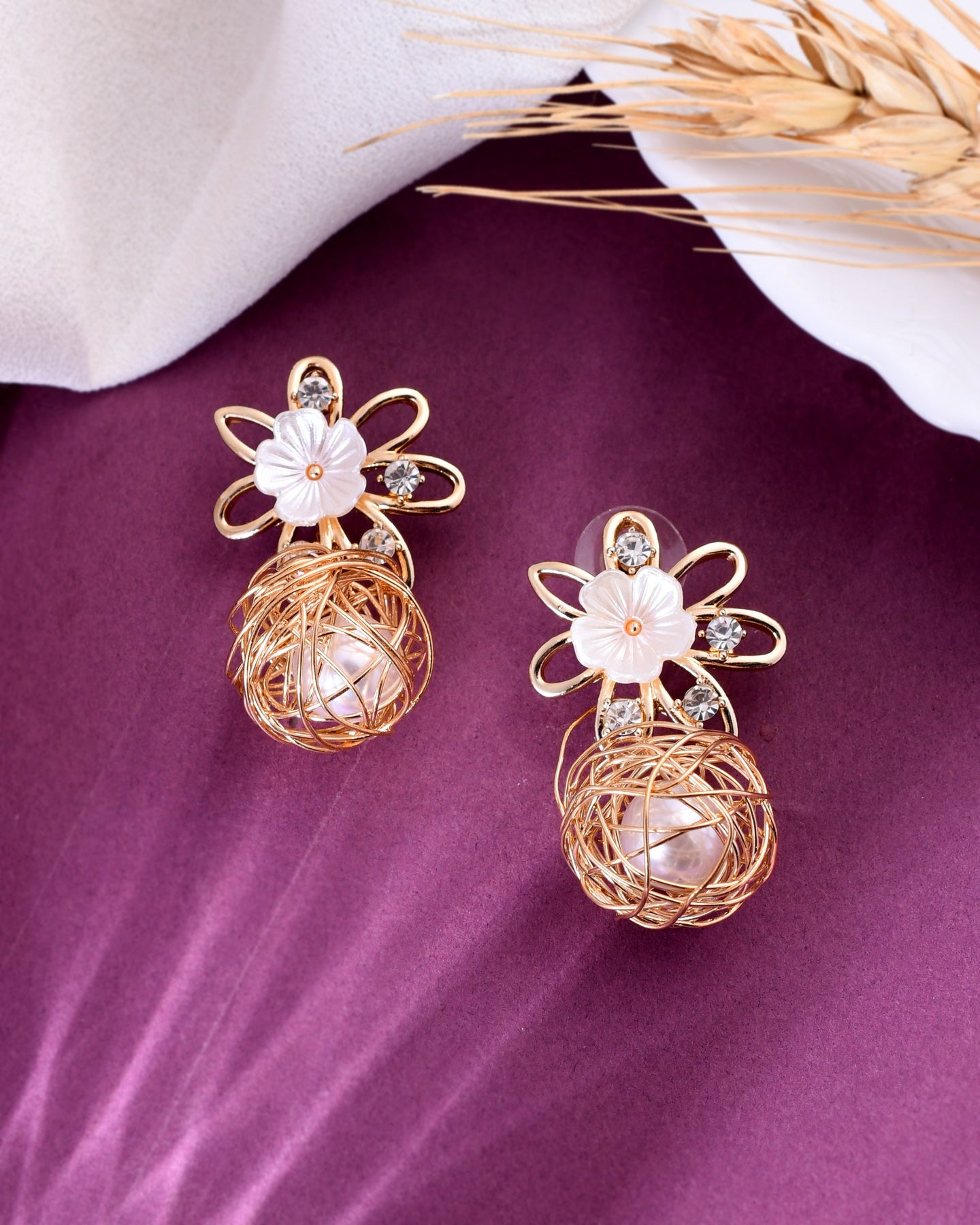 Introducing The Voj Women Gold Plated Flower Pearl Studs Earring, A Stunning Addition To Any Jewelry Collection. These Earrings Feature A Delicate Flower Design With A Lustrous Pearl Center, All Plated In A Luxurious Gold Finish. The Studs Are Perfect For Everyday Wear Or Special Occasions, Adding A Touch Of Elegance To Any Outfit. Crafted With High-Quality Materials, These Earrings Are Durable And Long-Lasting. Elevate Your Style With The Voj Women Gold Plated Flower Pearl Studs Earring.
