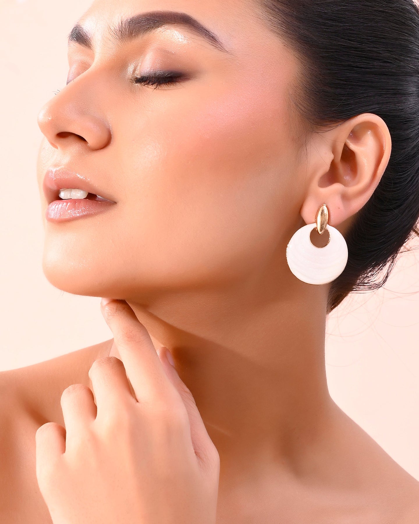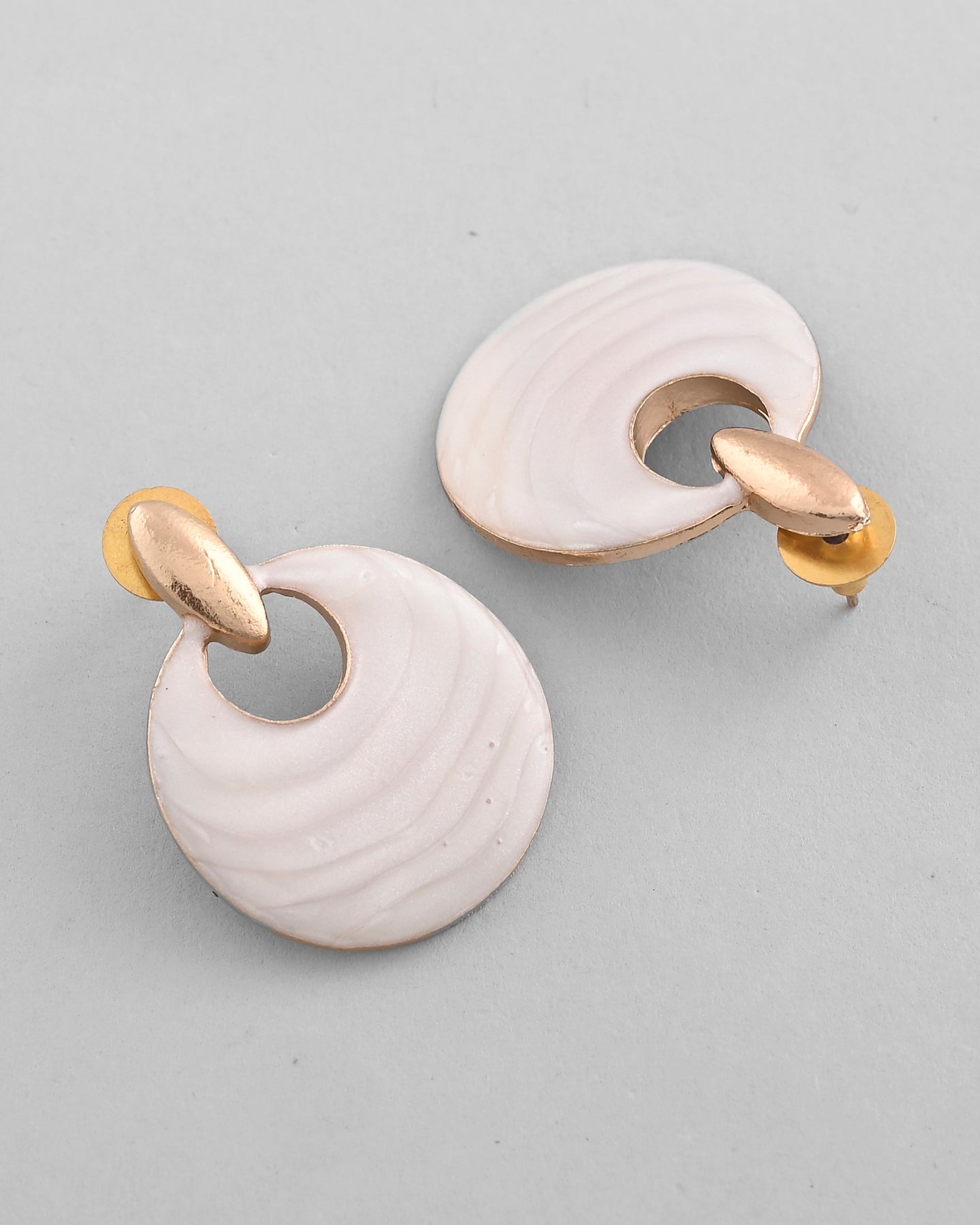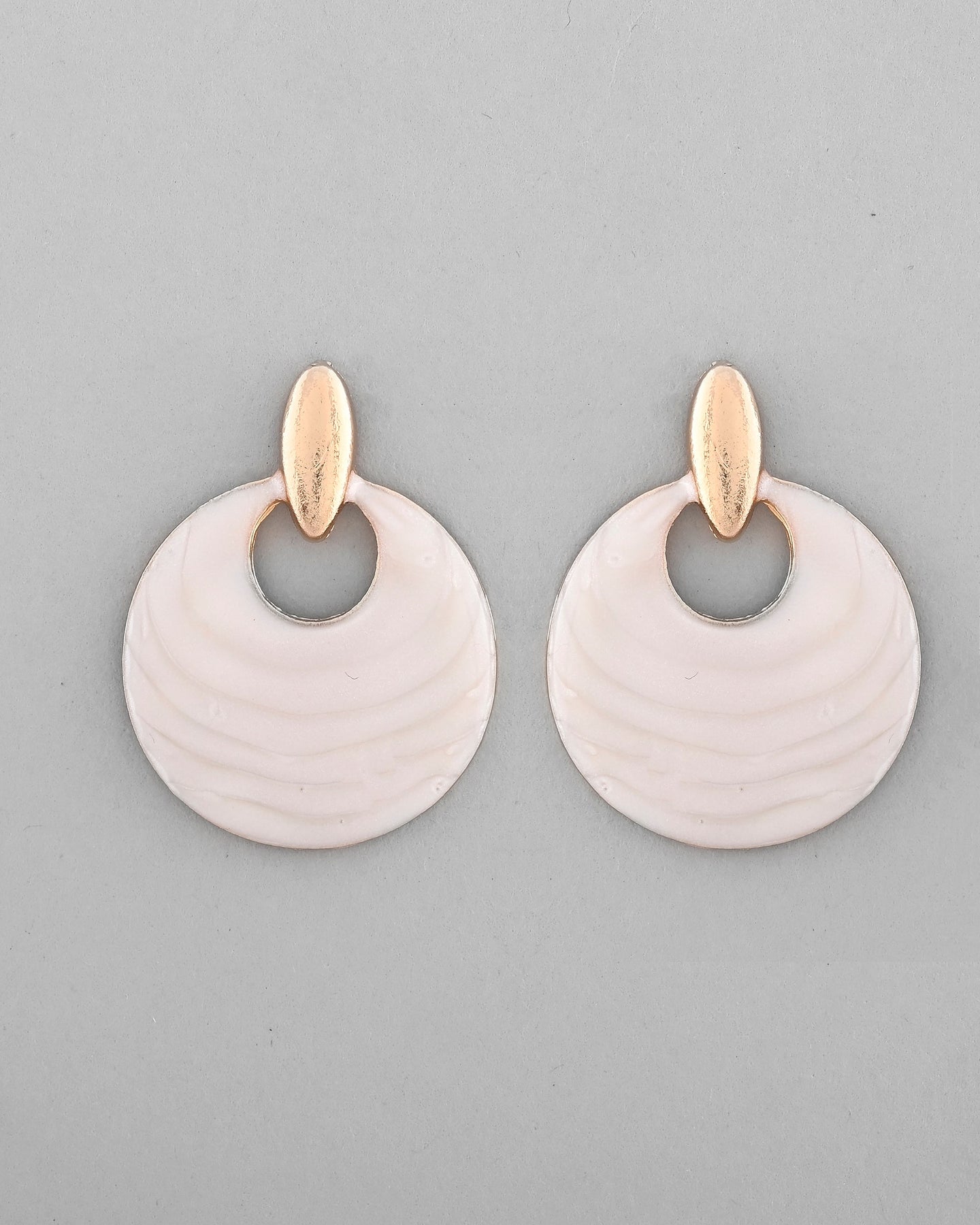 Women's Gold-Plated Korean Style White Circular Studs Earrings