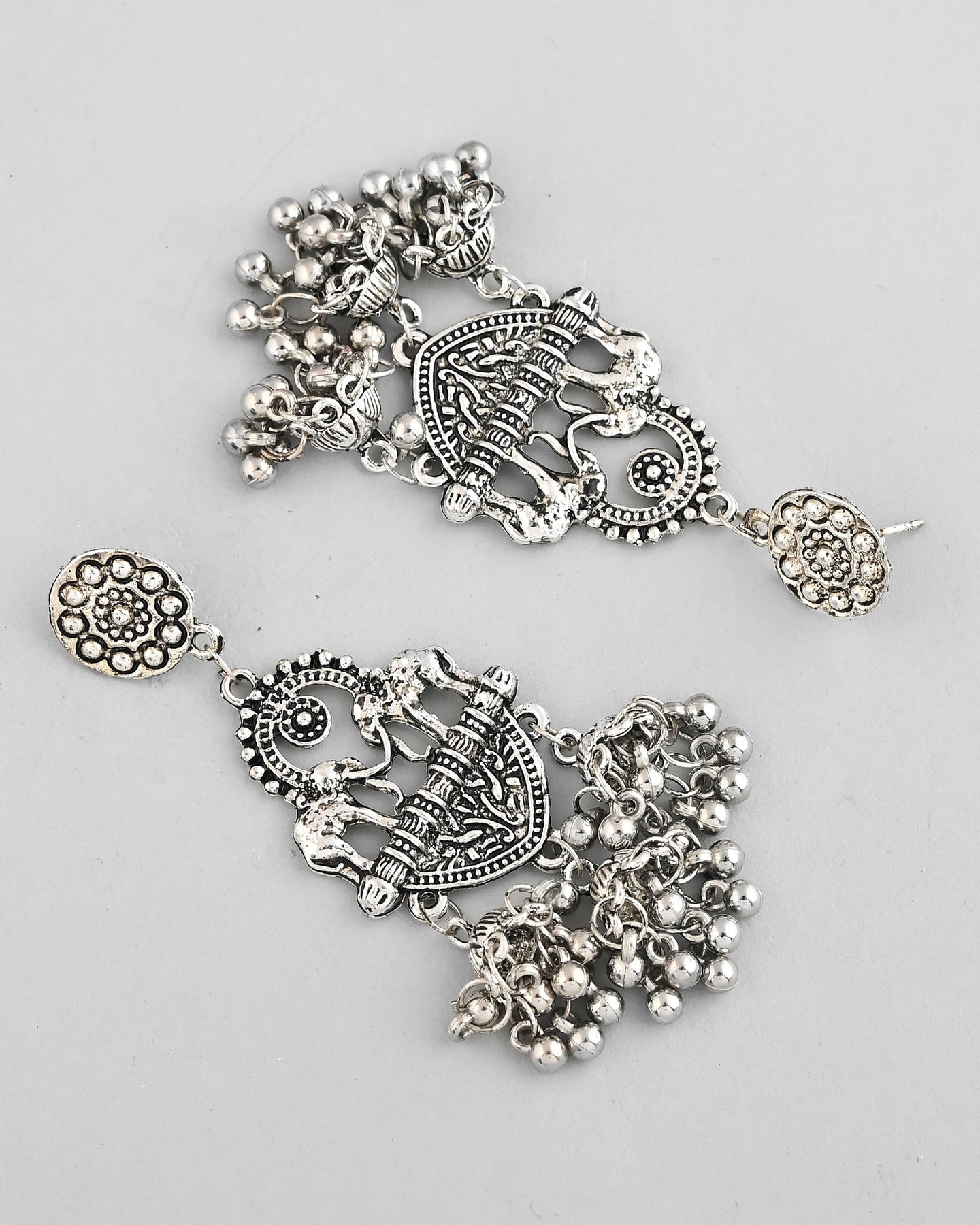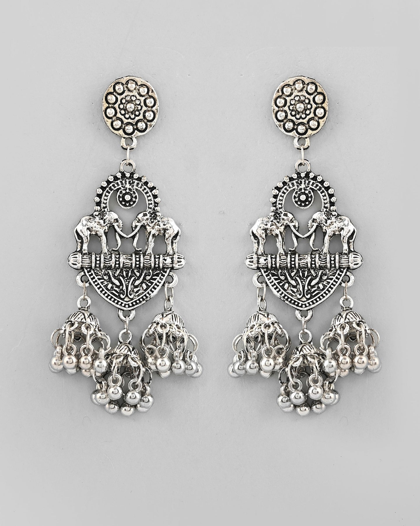 Women's Silver-Plated Elephant Oxidized Contemporary Drop Earrings