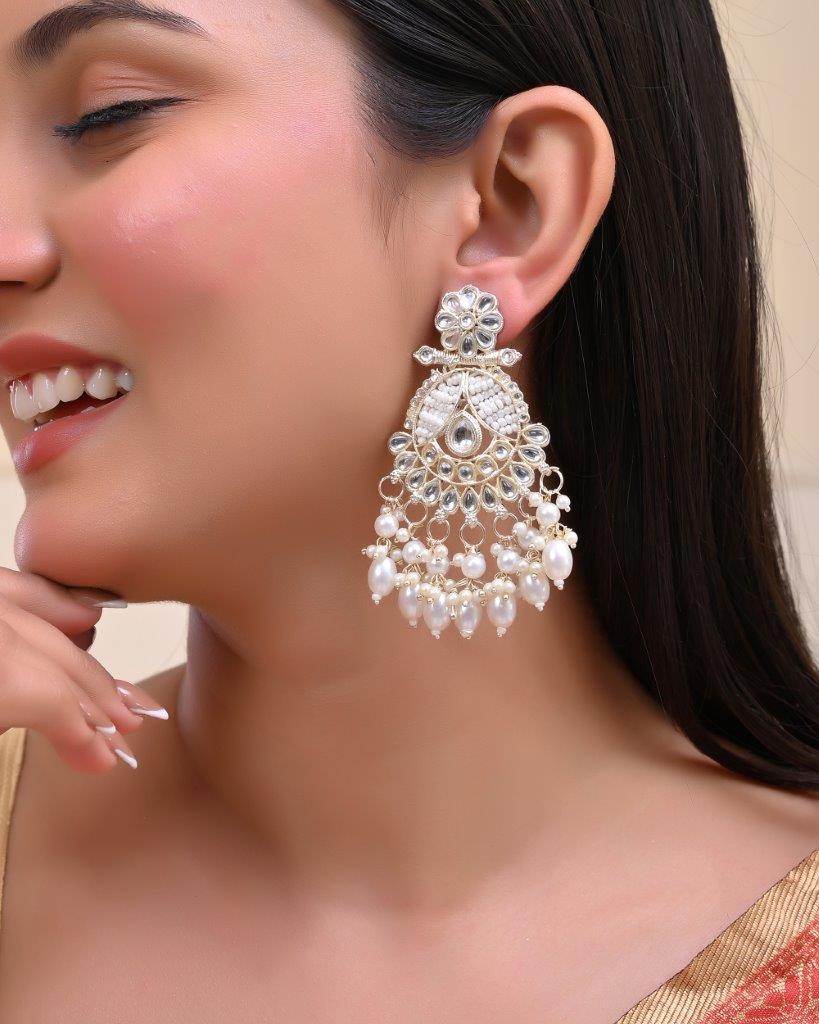 Elevate Your Jewelry Collection With Our Gold Plated Stone Studded Drop Earrings. Featuring A Stunning Design Adorned With Sparkling Stones, These Earrings Catch The Light Beautifully And Add A Touch Of Glamour To Any Outfit. The Gold Plating Enhances Their Elegance, Making Them Perfect For Both Everyday Wear And Special Occasions. Lightweight And Stylish, They Are A Timeless Accessory.