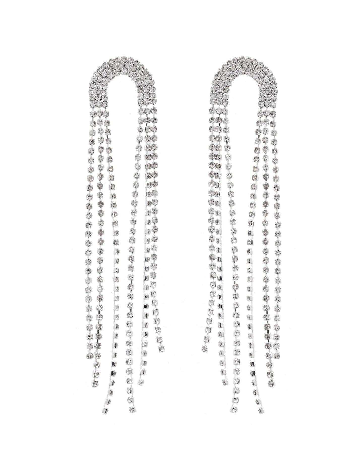 These Silver-Plated Contemporary Drop Earrings Are Adorned With Sparkling Crystal Stones, Offering A Sophisticated And Chic Design. The Sleek, Modern Drop Shape Adds Elegance, Making Them Perfect For Both Casual And Formal Occasions. With Their Eye-Catching Shimmer And Versatile Style, These Earrings Are A Must-Have Accessory To Elevate Any Outfit With A Touch Of Luxury.