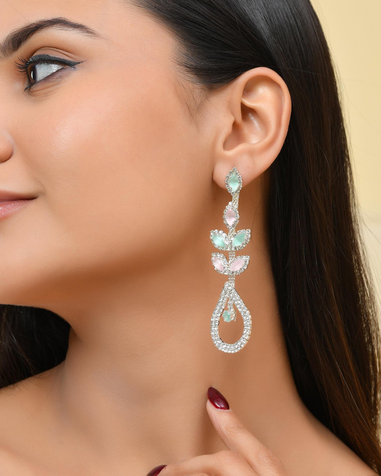 These Silver-Toned Drop Earrings Feature Stunning Mint Green And Pink Tear-Drop Shaped Stones, Creating A Beautiful Contrast That Adds A Pop Of Color To Your Look. The Elegant Design Is Perfect For Both Casual And Formal Occasions, Offering A Graceful And Sophisticated Touch. These Earrings Are A Chic, Versatile Accessory To Elevate Any Outfit With A Fresh And Feminine Flair.