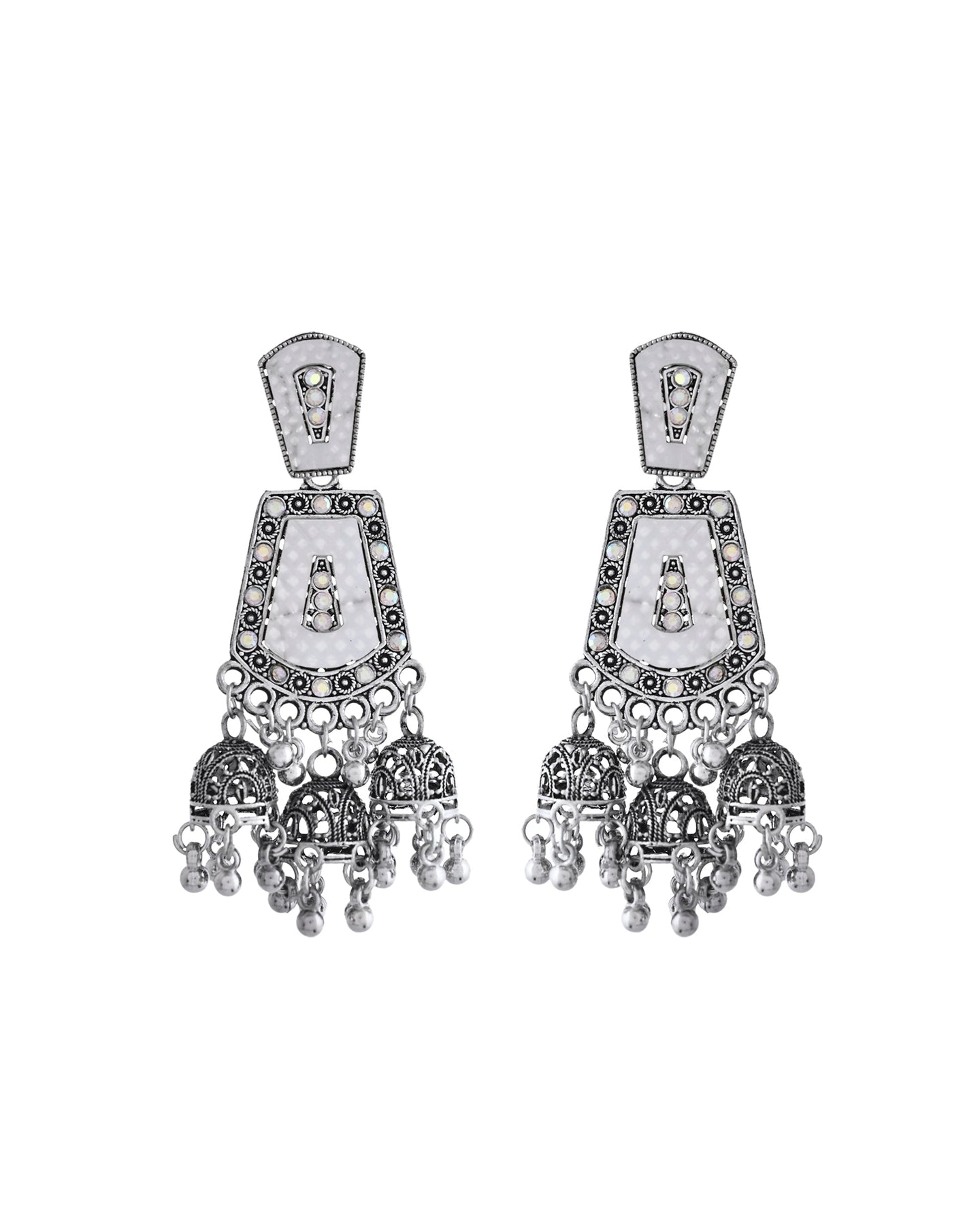 These Silver Plated Moonstone Studded Elegant Earrings Exude Timeless Beauty And Sophistication. Adorned With Shimmering Moonstones And A Sleek Silver-Plated Finish, They Create A Refined And Graceful Look. Perfect For Both Casual And Formal Occasions, These Earrings Add A Touch Of Elegance To Any Outfit, Making Them A Versatile And Essential Addition To Your Jewelry Collection.