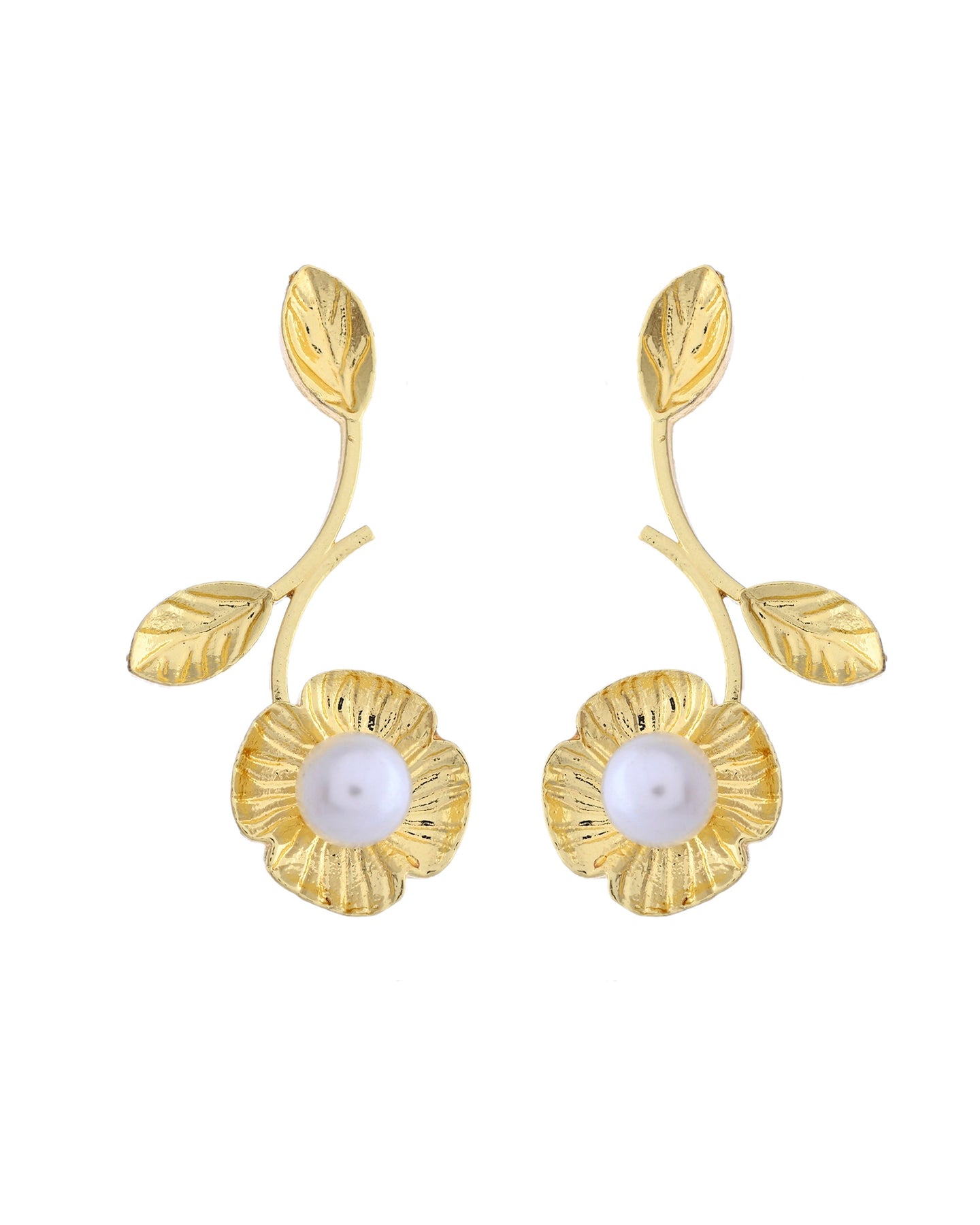These Gold Toned Floral Shaped Elegant Earrings Beautifully Combine Intricate Floral Design With Timeless Elegance. The Delicate Detailing And Warm Gold Tone Create A Sophisticated And Feminine Look, Perfect For Enhancing Any Outfit. Ideal For Weddings, Parties, Or Special Occasions, These Earrings Add A Graceful Touch Of Charm And Refinement To Your Ensemble.