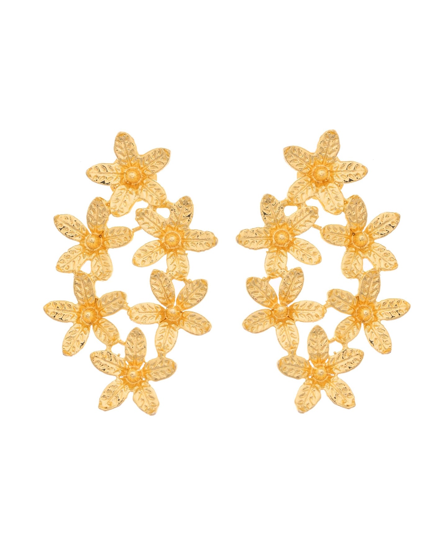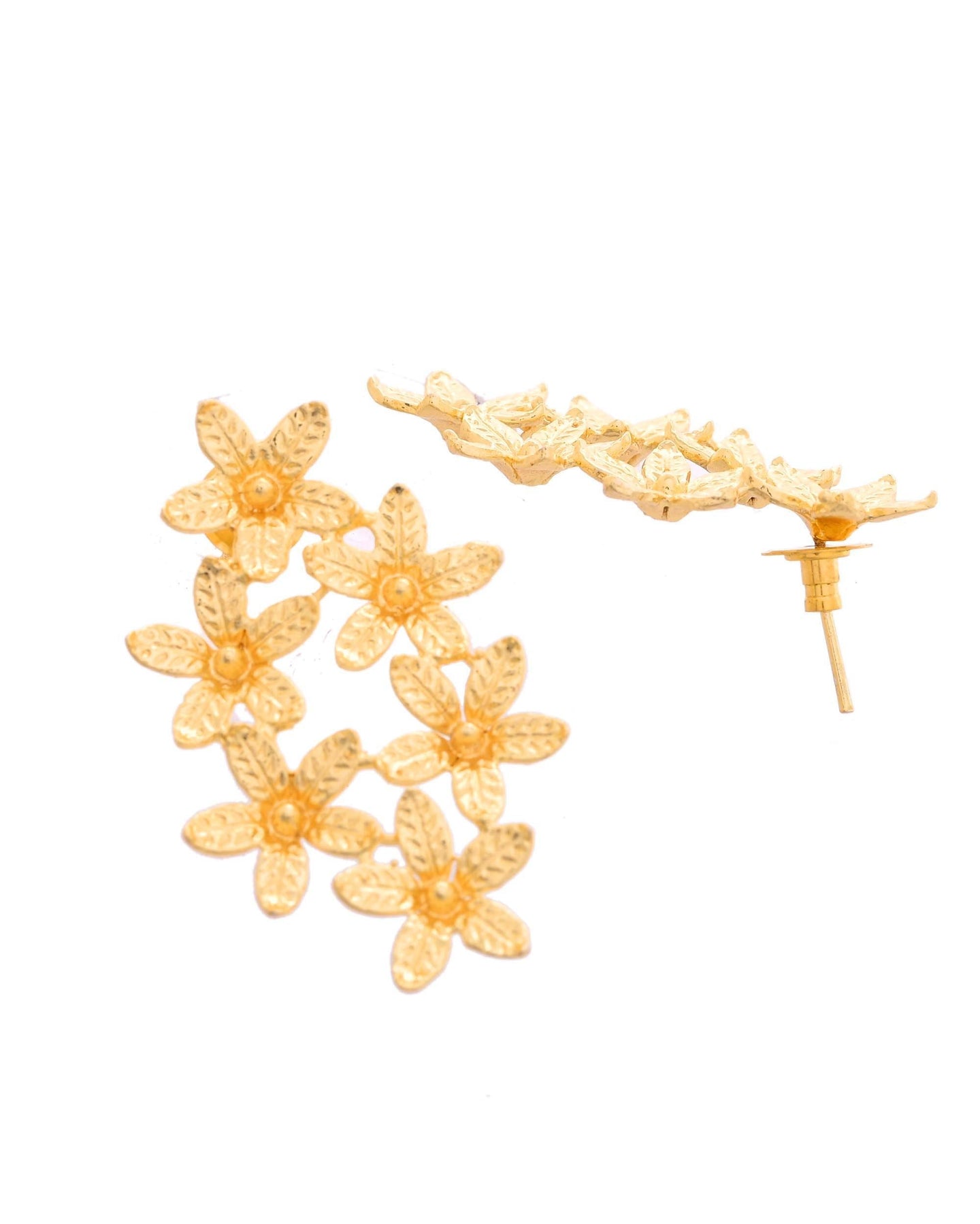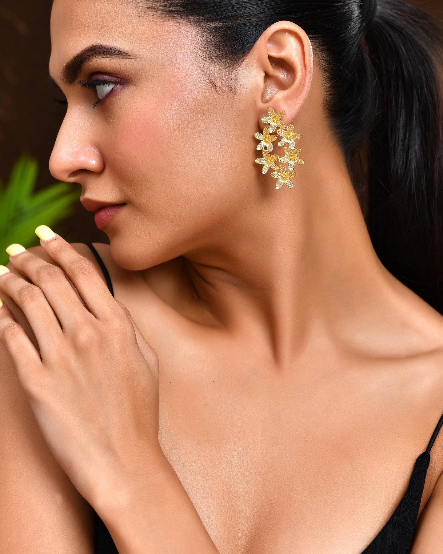 Embrace Elegance With These 18K Gold Plated Floral Designer Earrings. Featuring A Beautifully Detailed Floral Motif, They Exude Femininity And Charm. The Rich 18K Gold Plating Adds A Luxurious Glow, Making Them Perfect For Both Everyday Wear And Special Occasions. Lightweight And Stylish, These Earrings Are A Graceful Addition To Any Jewellery Collection.