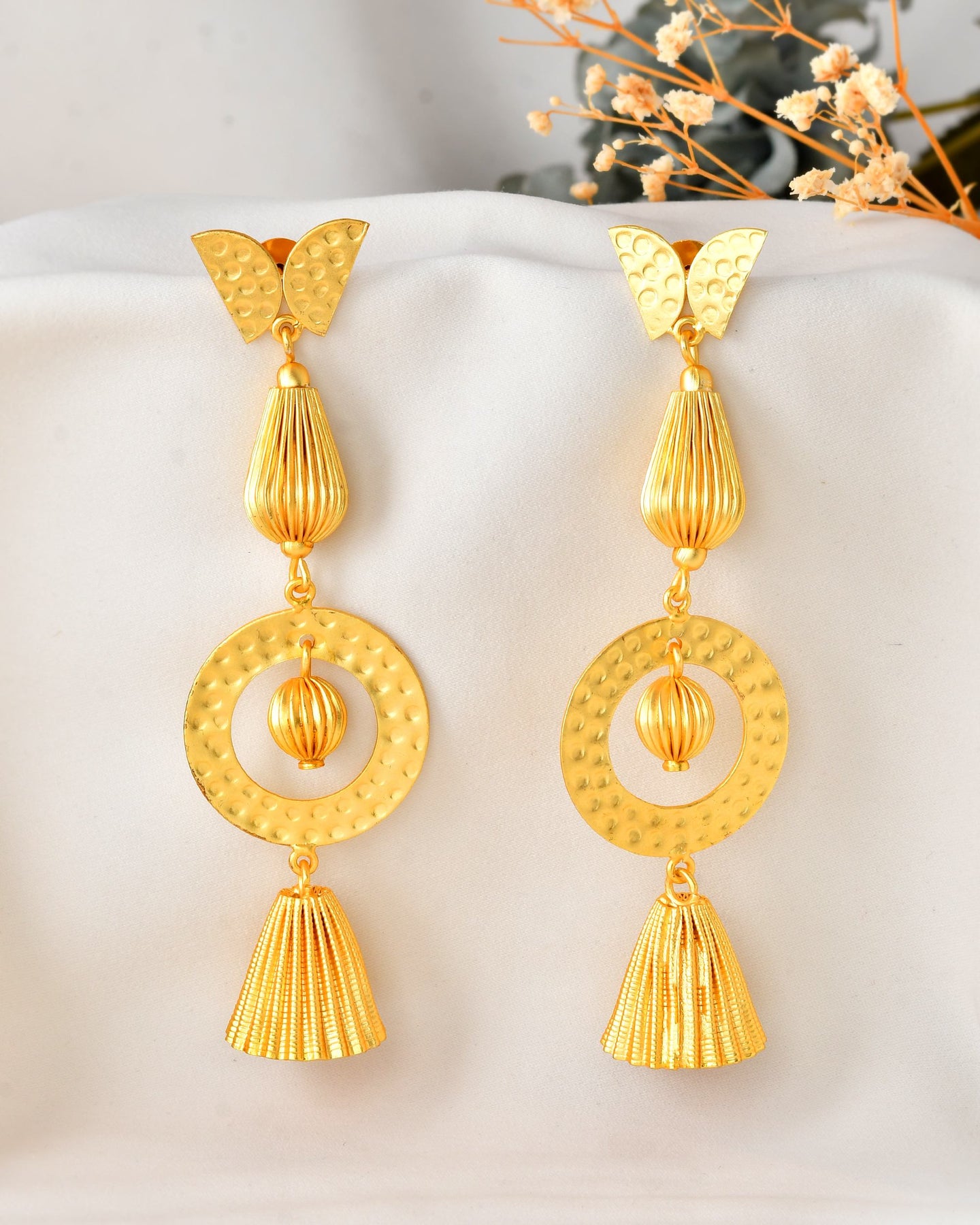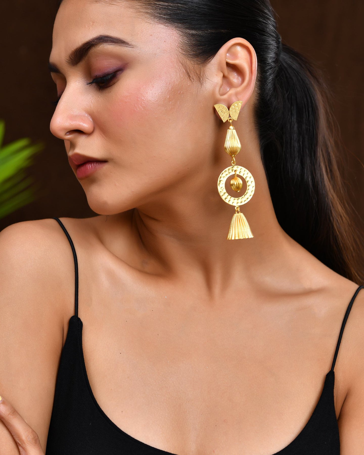 Make A Bold Style Statement With These 18K Gold Plated Designer Anti-Tarnish Big Drop Earrings. Crafted For Elegance And Impact, They Feature A Luxurious Gold Finish With A Contemporary Design. The Anti-Tarnish Coating Ensures Lasting Shine And Durability, Making Them Perfect For Parties, Weddings, And Festive Occasions. A Stunning Accessory To Elevate Any Outfit Effortlessly.