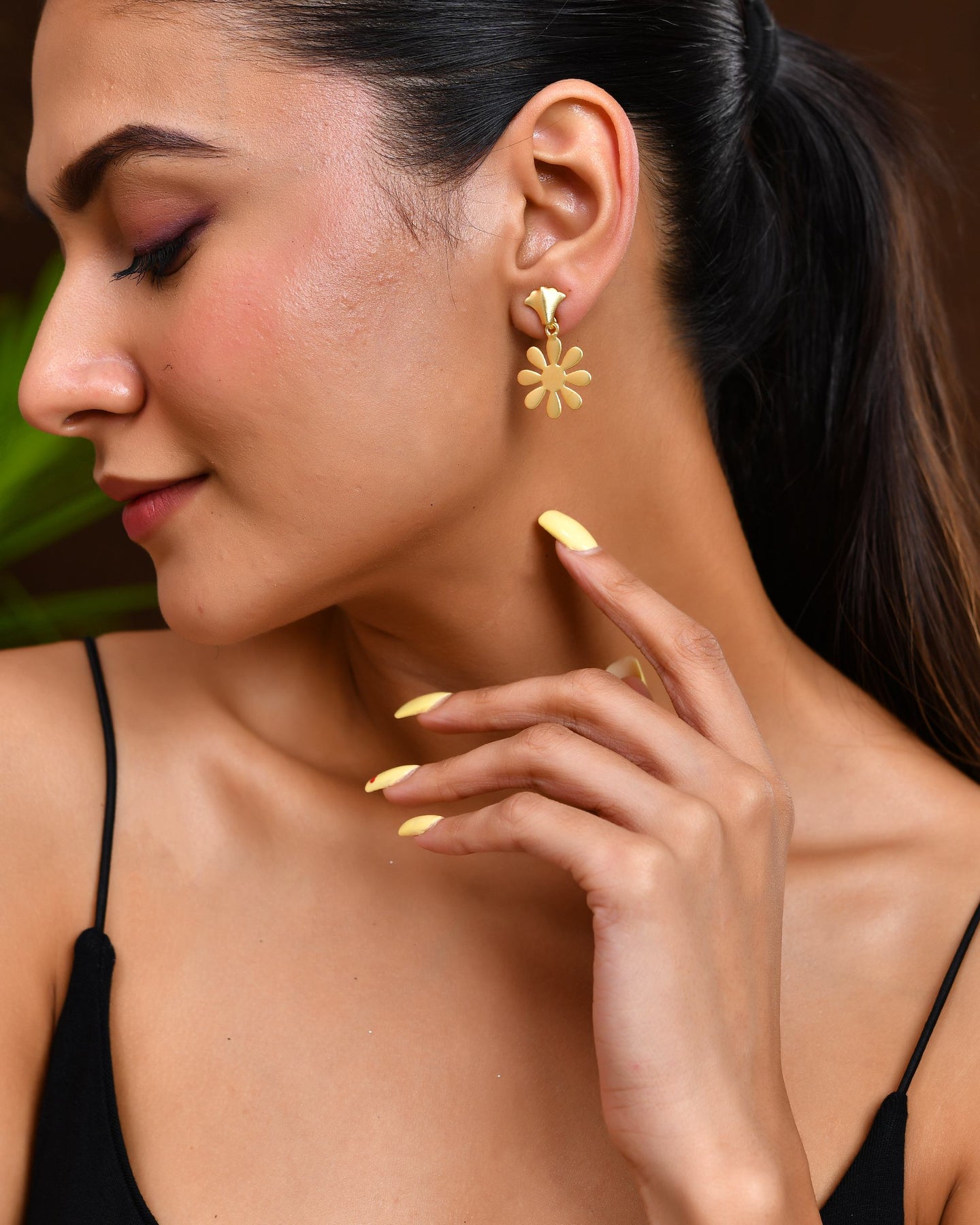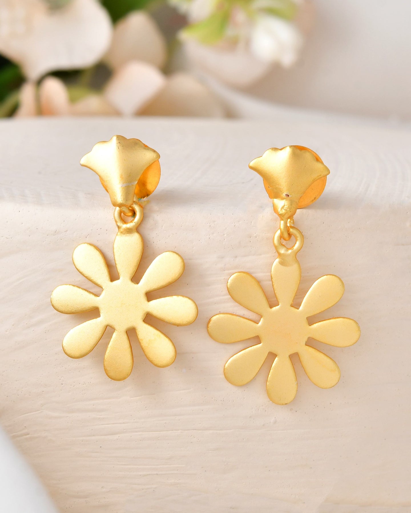 Add A Touch Of Grace With These 18K Gold Plated Anti-Tarnish Flower Shaped Drop Earrings. Designed With Delicate Floral Motifs, They Exude Feminine Charm And Timeless Elegance. The Anti-Tarnish Coating Ensures Lasting Shine, While The Rich Gold Finish Adds A Luxurious Touch. Perfect For Festive Occasions, Celebrations, Or Elevating Your Everyday Look.