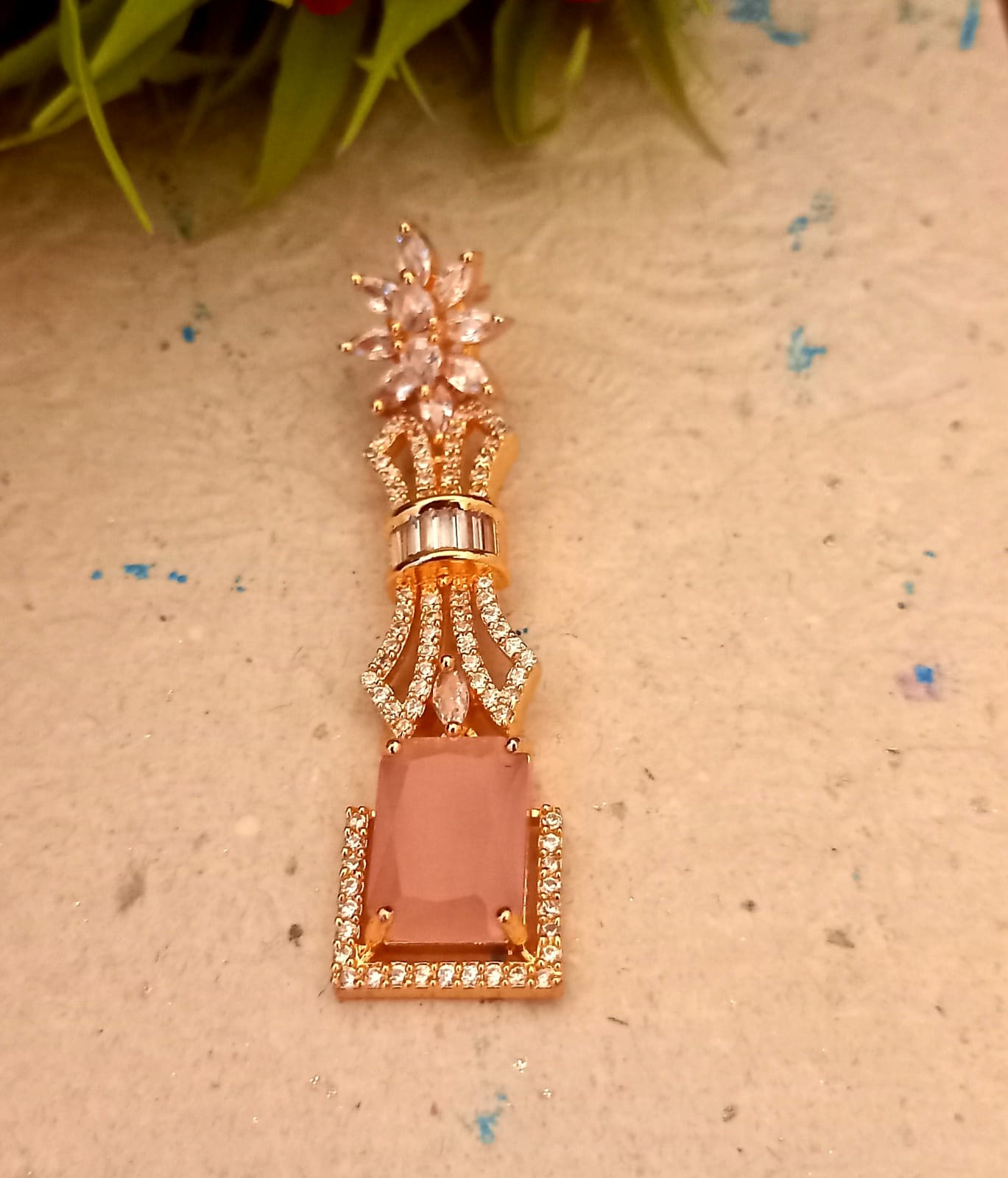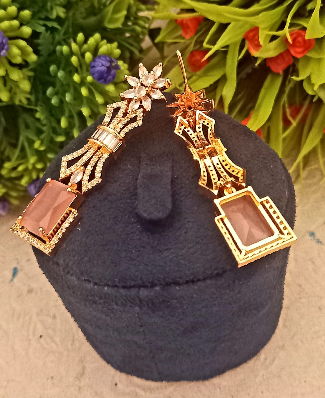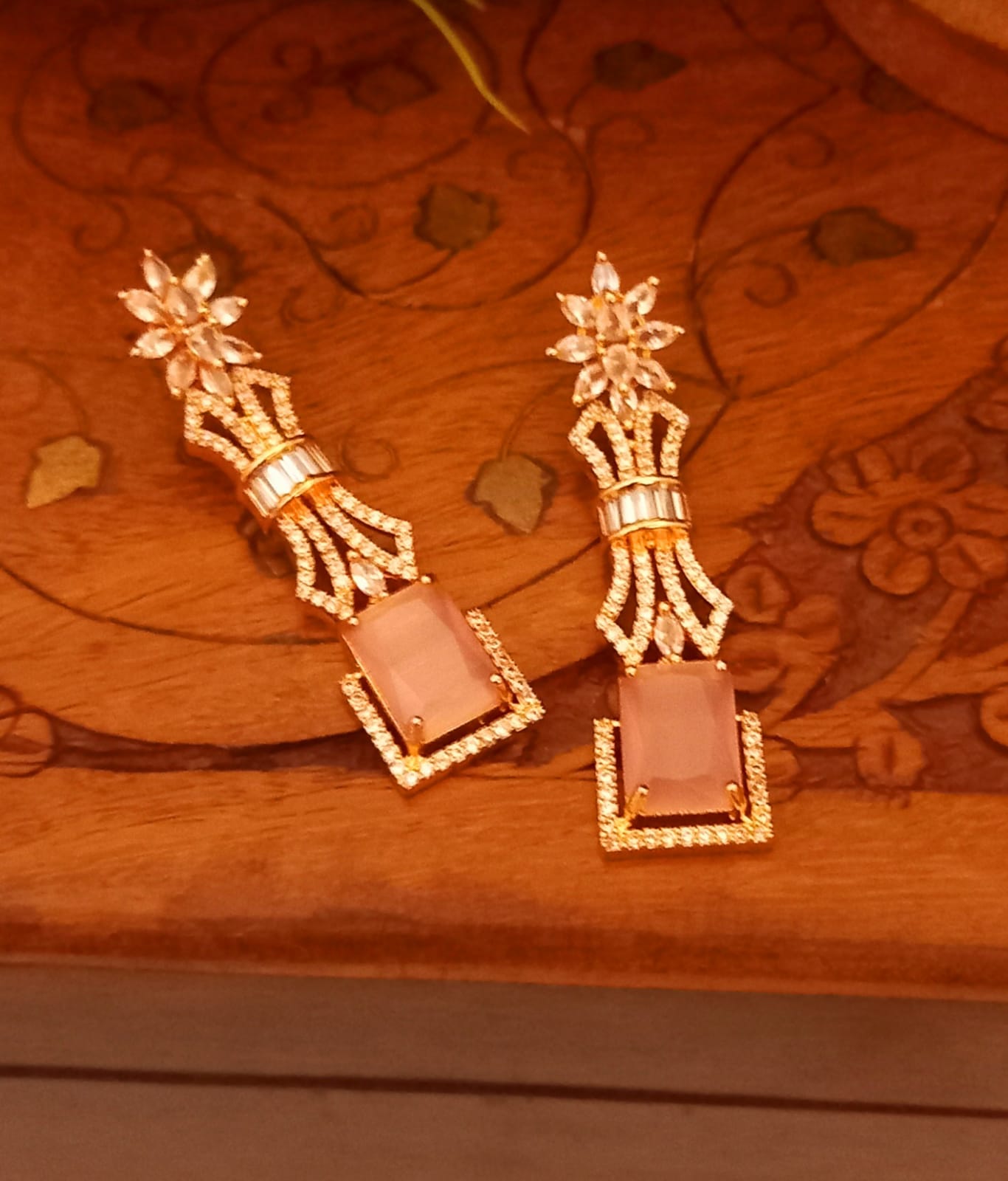 Pink Colour Indian Jewellery American Diamond Rose Polish Long Hangging Dangler Earrings