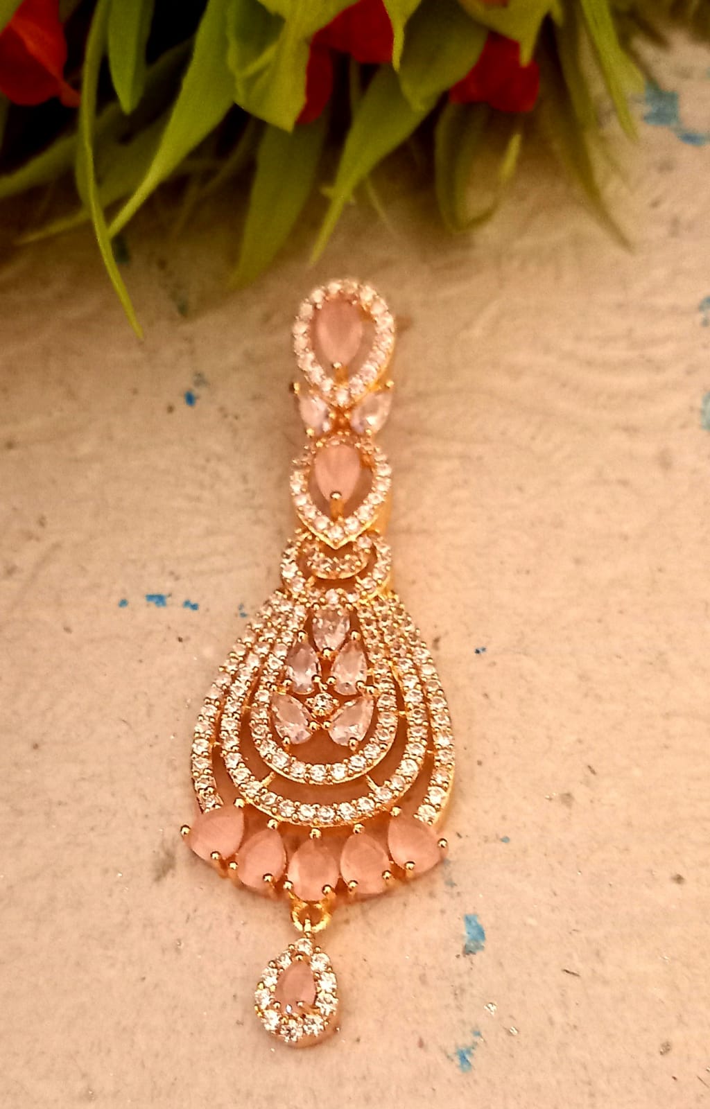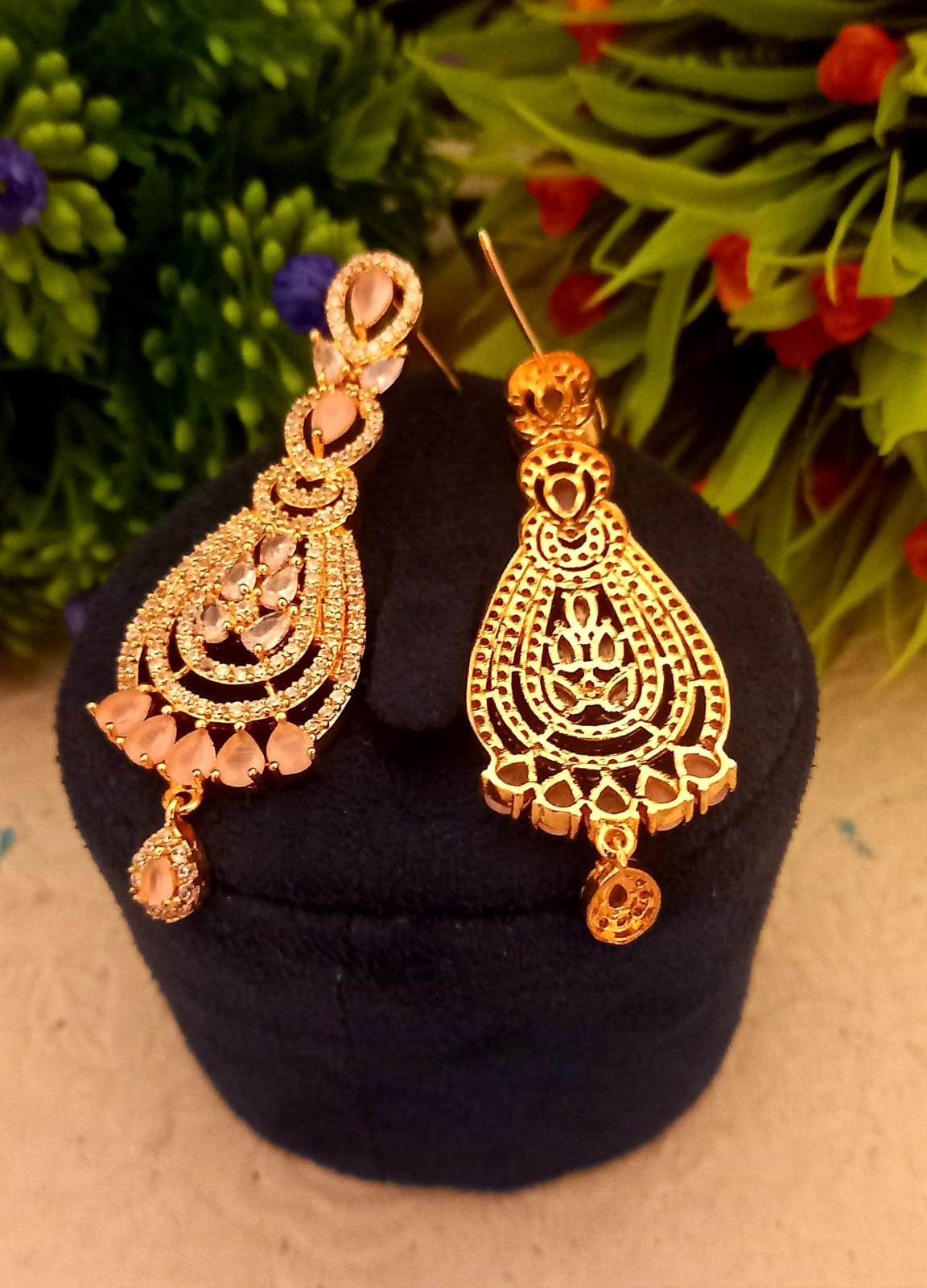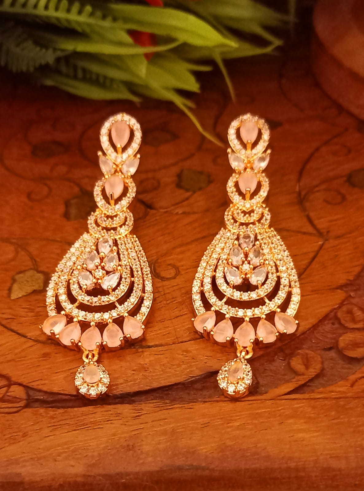 Pink Colour Indian Jewellery American Diamond Rose Polish Long Hangging Dangler Earrings
