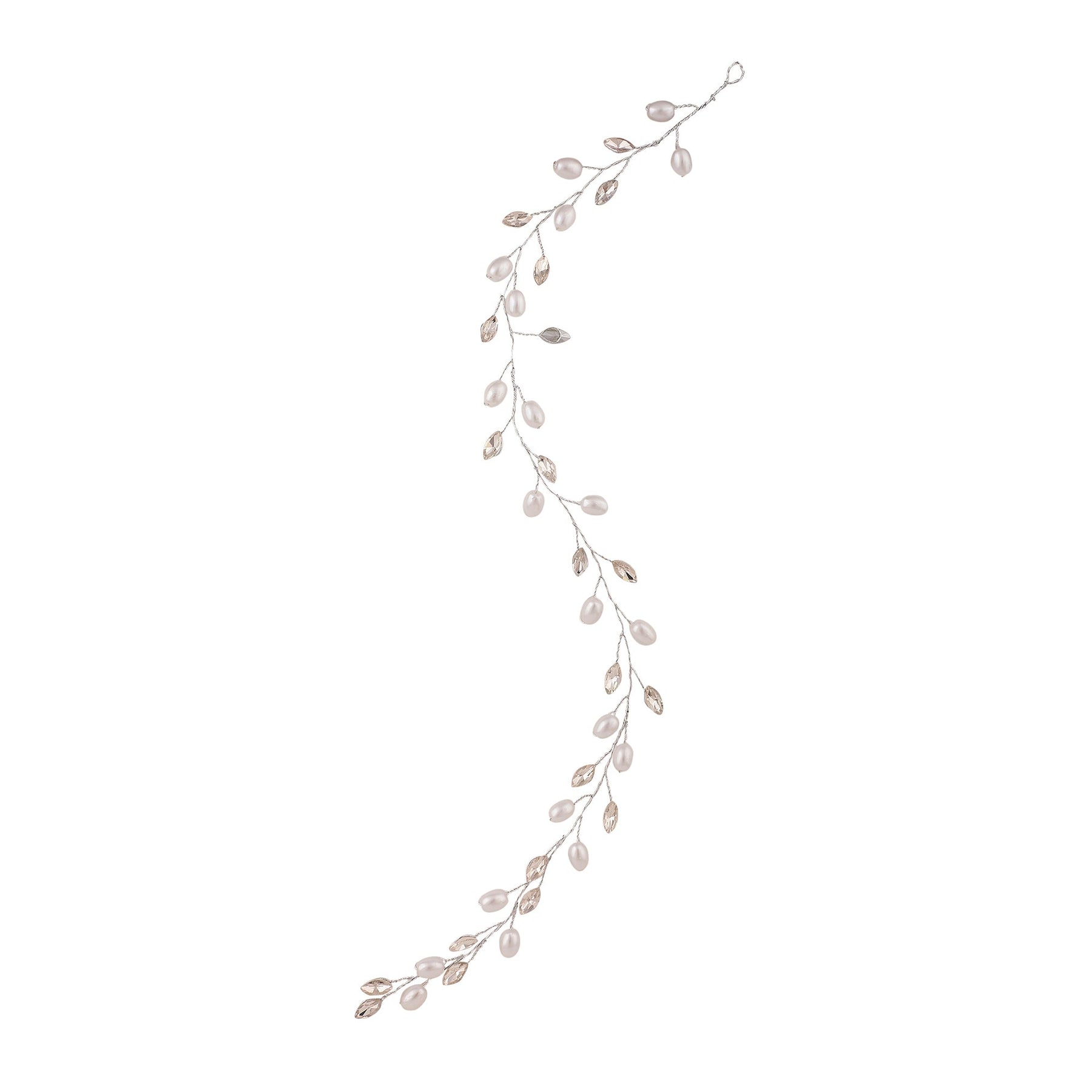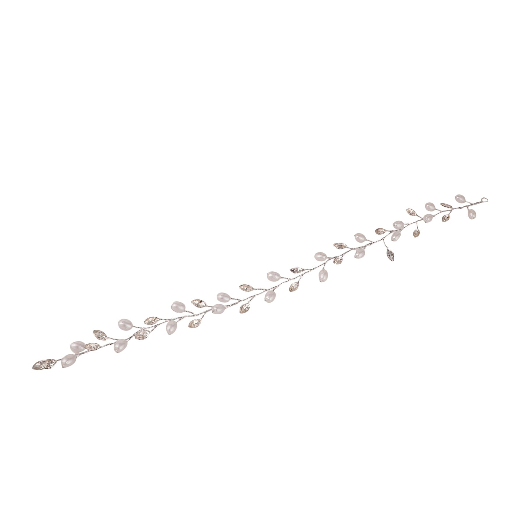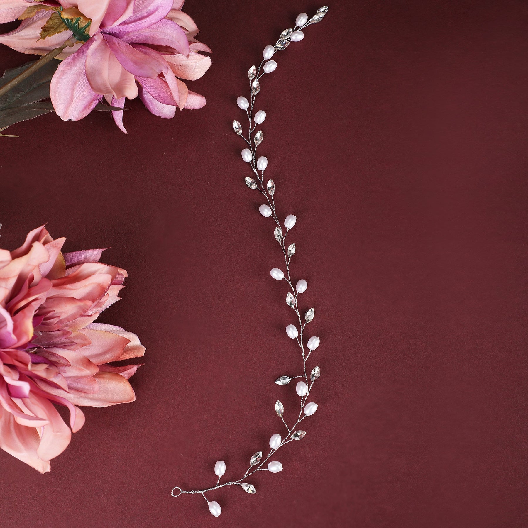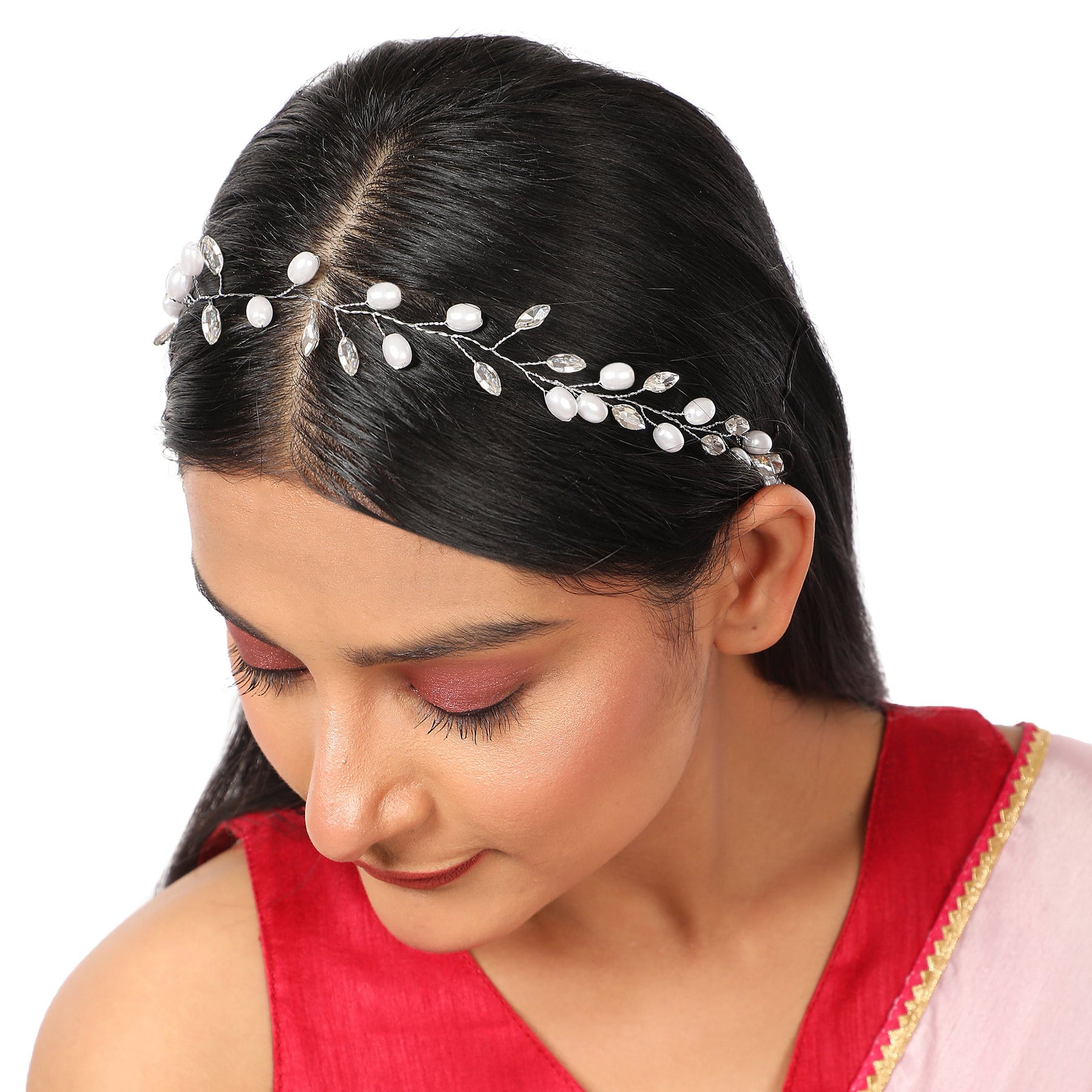 Mode Mania Contemporary Silver Plated Leaf Design Peal Studded Foldable Hair Accessory For Women And Girls